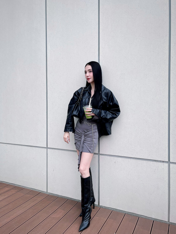 Khi xuống phố, phong cách của Mai Hồ đầy trẻ trung, thời thượng nhưng vẫn gợi cảm. Ảnh: FBNV