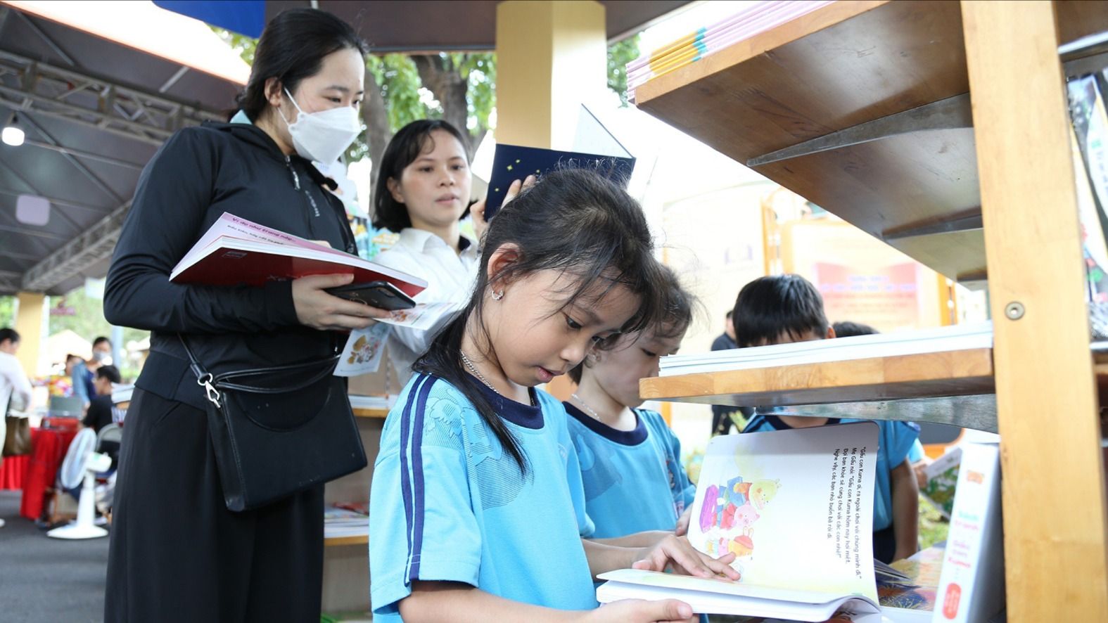 Trẻ em và người lớn tìm sách tại một hội sách ở TPHCM. Ảnh: QUỲNH YÊN