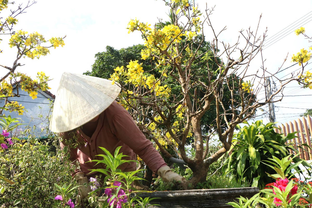 Ông nói chậm rãi: “Trồng mai để nó trổ đúng vụ là cộng đủ thứ: thời tiết, phân bón, nước tưới. Không phải tới gần Tết rồi mới lo được”.