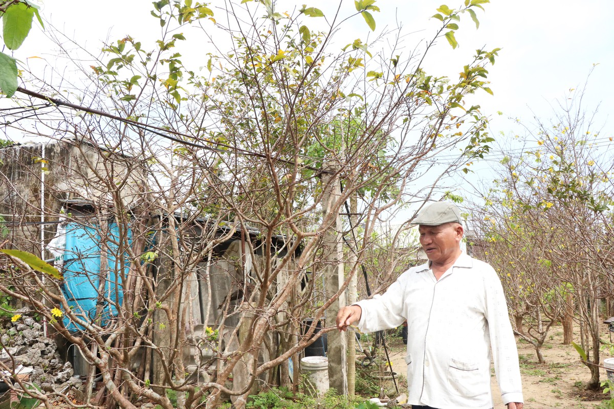 Với những người làm mai lâu năm, việc hoa năm nay nở sớm không quá bất ngờ. Ông Phạm Văn Nhơn (SN 1954, khối phố Đồng Nà, phường Hội An Tây) có trên 100 gốc mai Tết, đã hơn 20 năm gắn bó với nghề.