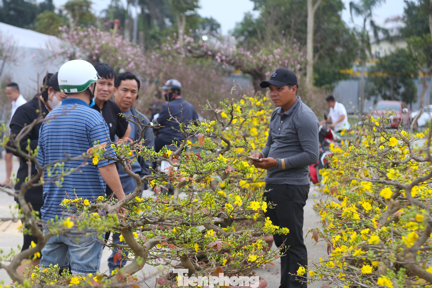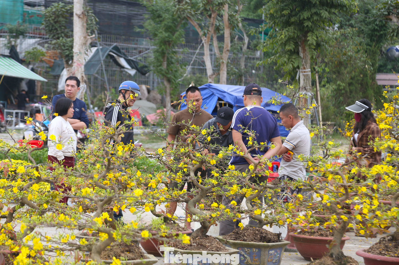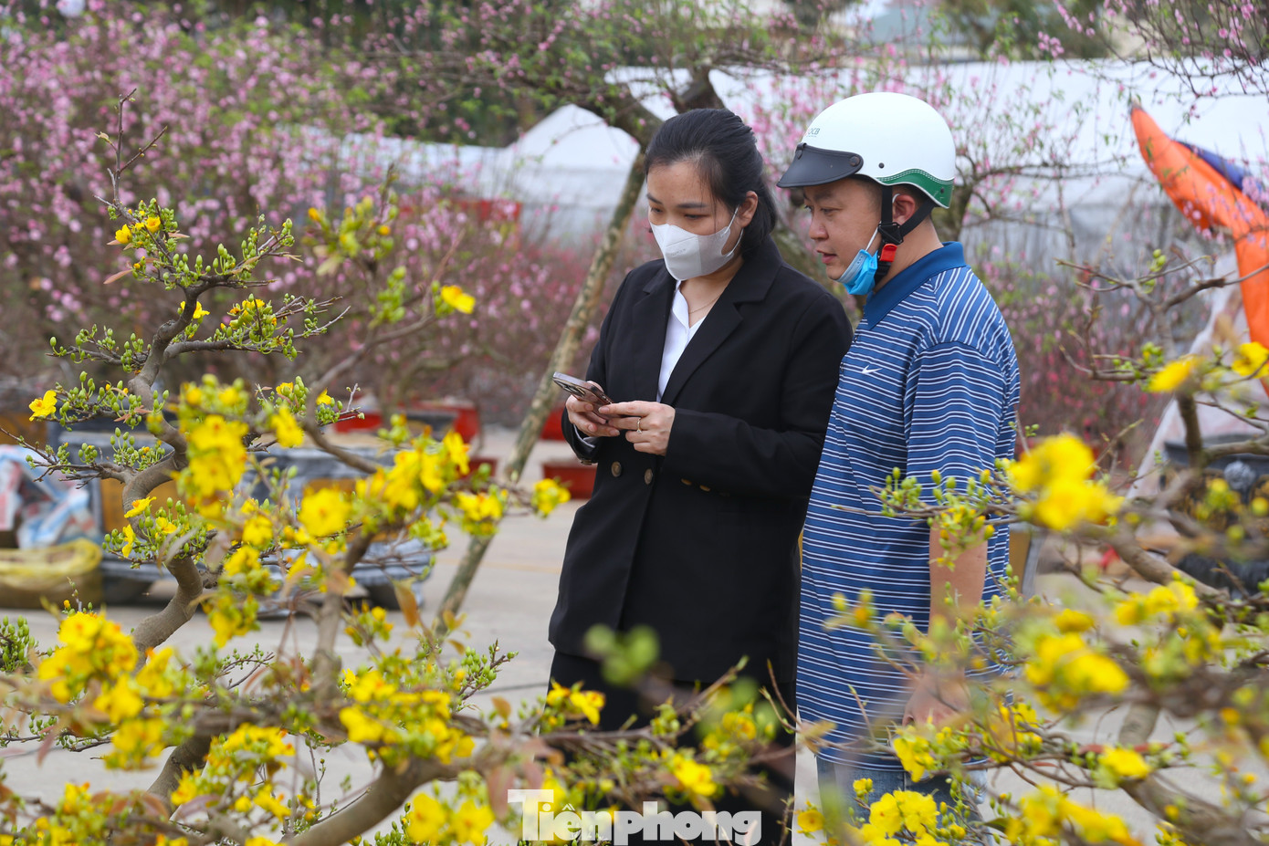 Không khí mua bán nhộn nhịp còn thể hiện ở việc nhiều khách phải đặt cọc trước để giữ cây đẹp. Một số chậu mai có dáng độc, nở đều, nhiều nụ thường được khách “chốt” rất sớm, chờ sát Tết mới chuyển về nhà.