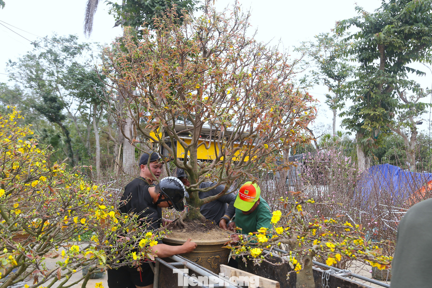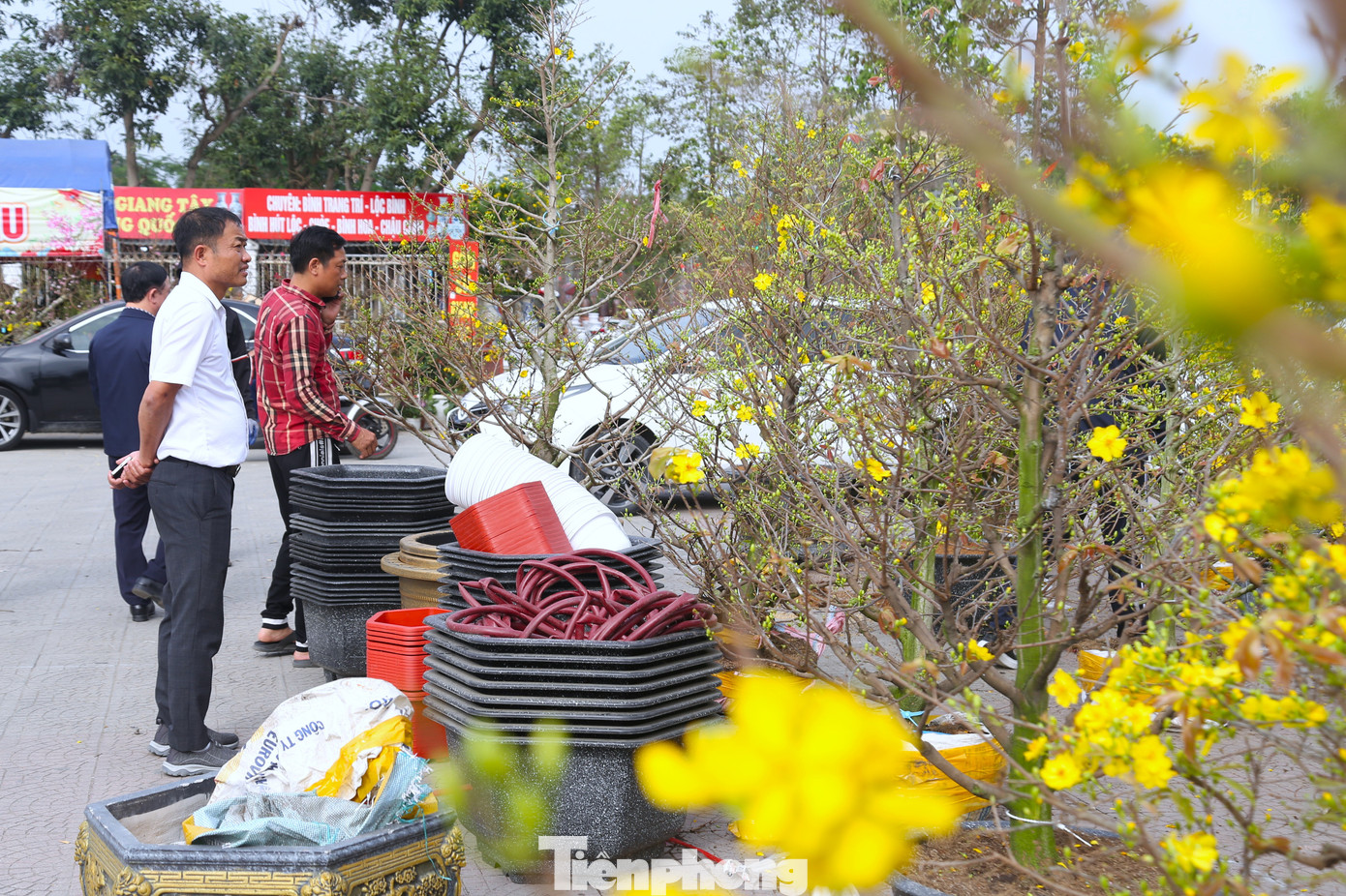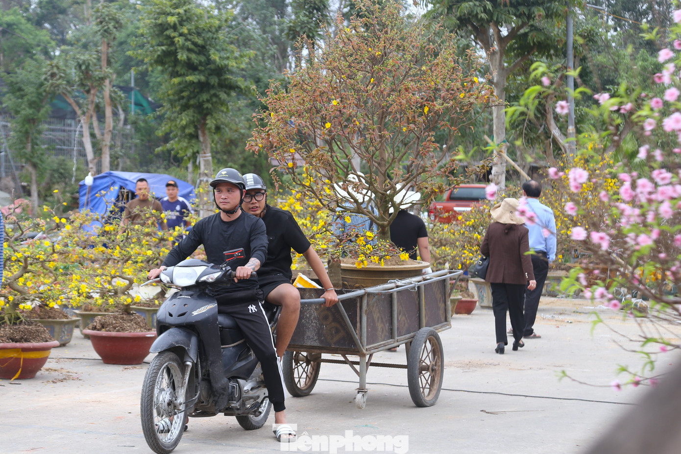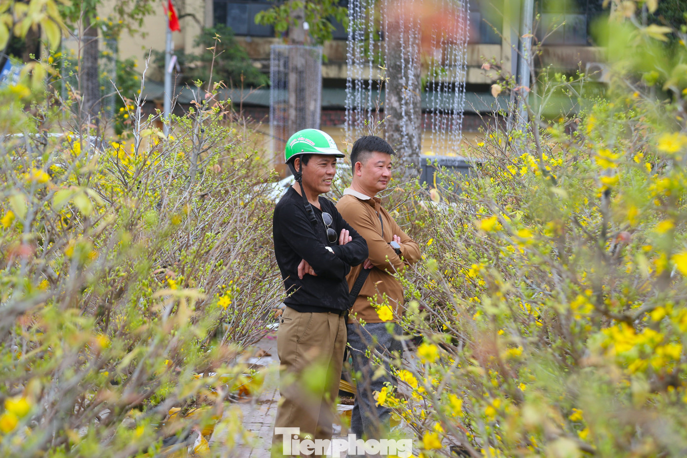 Không khí mua bán nhộn nhịp còn thể hiện ở việc nhiều khách phải đặt cọc trước để giữ cây đẹp. Một số chậu mai có dáng độc, nở đều, nhiều nụ thường được khách “chốt” rất sớm, chờ sát Tết mới chuyển về nhà.
