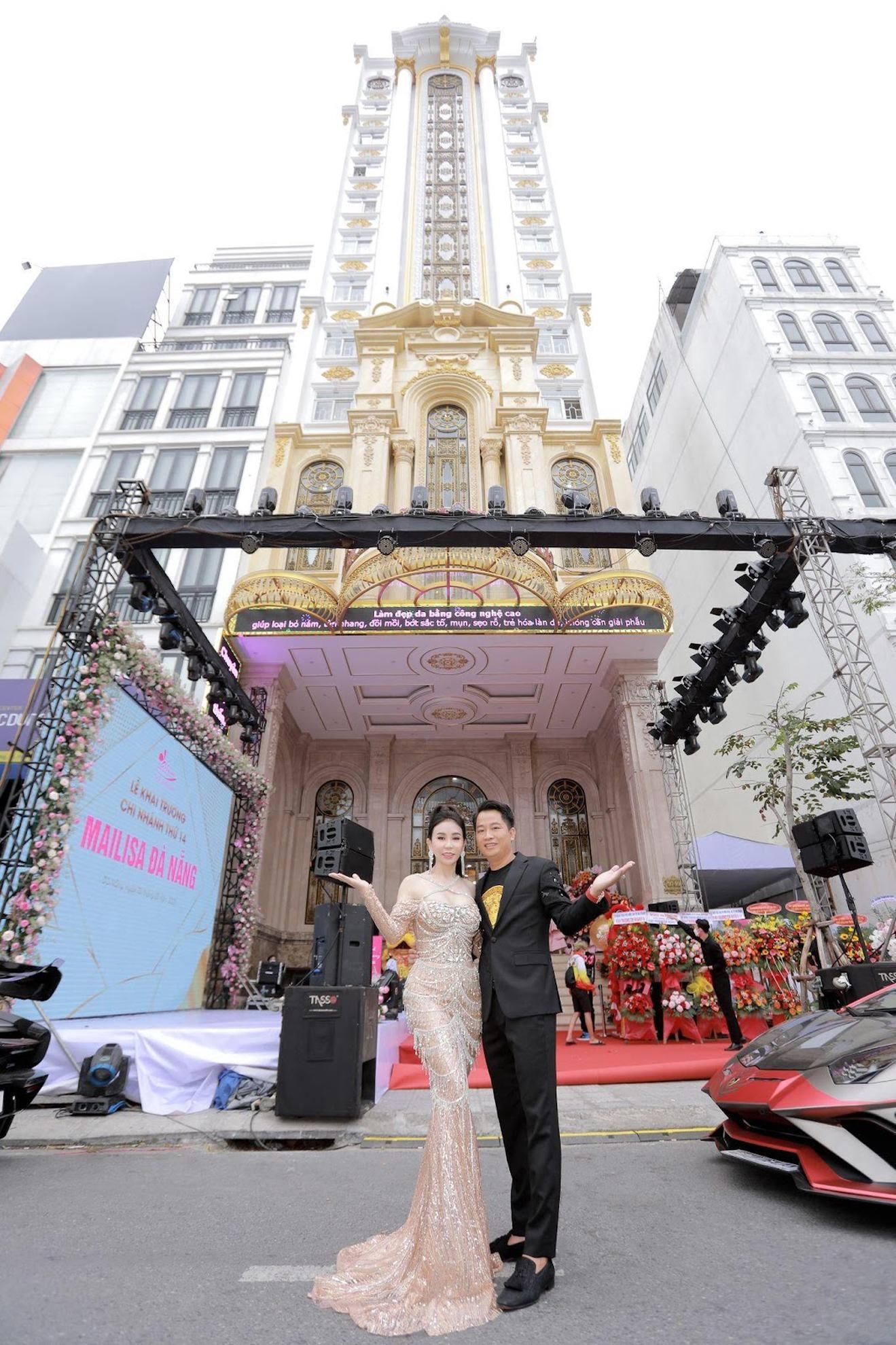 Phan Thị Mai (biệt danh Mailisa), Giám đốc Công ty TNHH thẩm mỹ viện Mailisa và chồng là Hoàng Kim Khánh, lúc khai trương cơ sở ở Phú Quốc. Ảnh: FBNV.