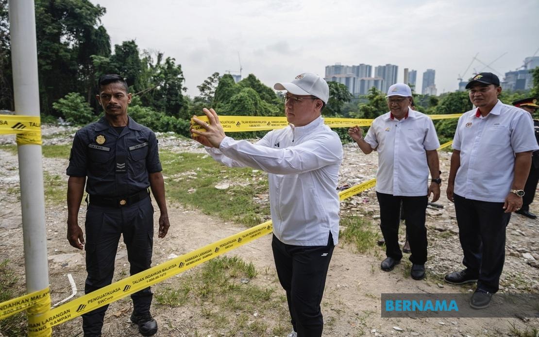 Bộ trưởng Bộ Nhà ở và Chính quyền địa phương và lực lượng SWCorp khảo sát hiện trường bãi rác trái phép trong chiến dịch “Sentuhan Kejayaan”. Ảnh: Bernama