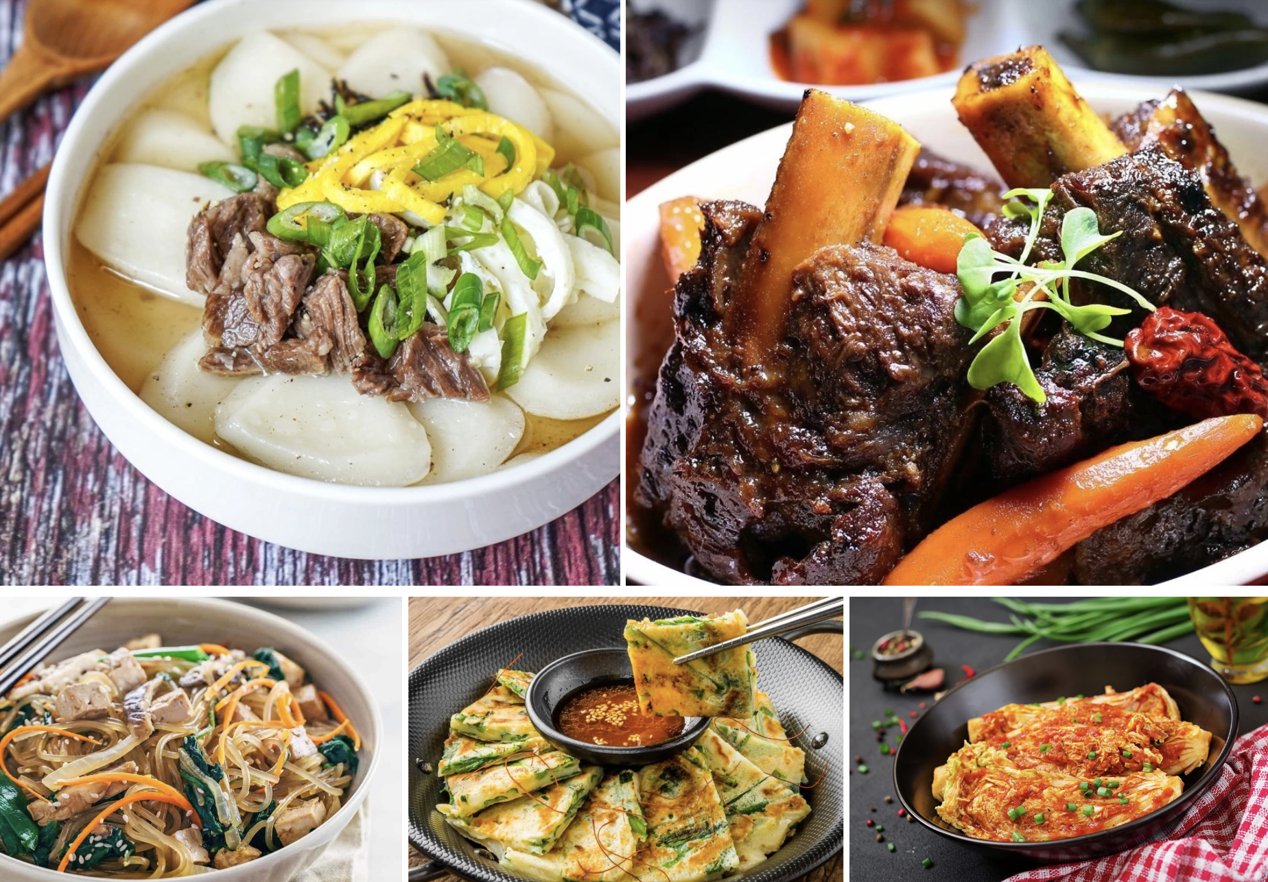 Jeon, các loại bánh xèo mỏng làm từ thịt, hải sản, rau củ, tượng trưng cho sự viên mãn và đủ đầy. Miến trộn Japchae với rau và thịt thể hiện mong ước về sức khỏe và sự hài hòa trong các mối quan hệ.