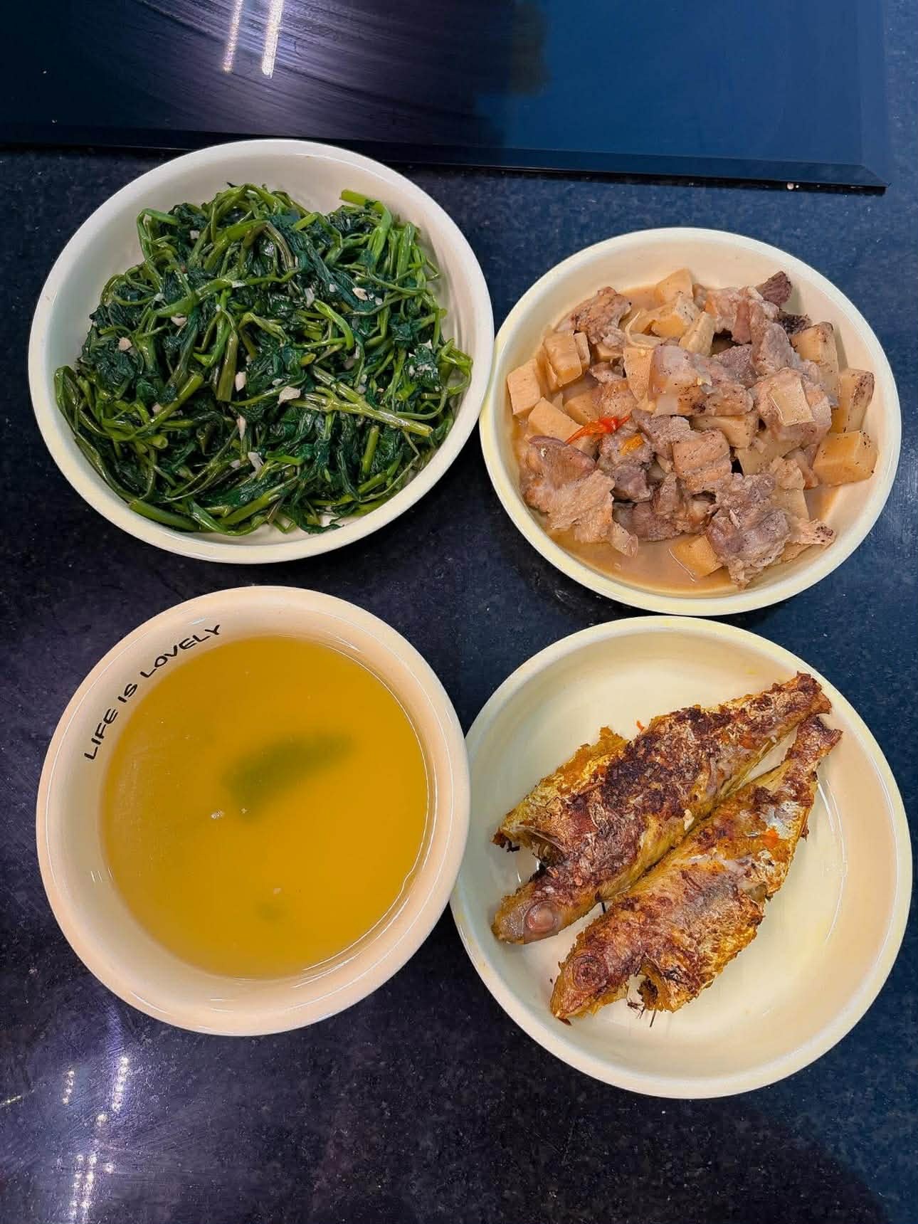 Bữa cơm của vợ chồng Ngọc Nhân (sinh năm 2000, TP.HCM) cũng chỉ lèo tèo vài miếng rau củ. "Hôm rồi muốn nấu canh rau dền mà ra chợ thấy giá tăng từ 15.000 lên 30.000 đồng, tôi phải đổi món. Cuối cùng chỉ mua một, hai củ cà rốt về xào tạm với miến cua", cô kể. Nếu tình trạng rau củ tăng giá còn kéo dài, đặc biệt khi miền Trung đang chịu lũ, vợ chồng cô tính phải nhờ bố mẹ dưới quê Long An gửi rau củ lên. "Gần một tuần nay, chúng tôi chỉ có vài bữa may mắn được ăn rau xanh", Nhân thở dài.
