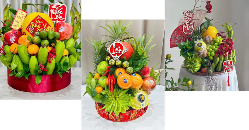 Giá mâm ngũ quả bán online không chênh lệch nhiều so với ngoài chợ, nhưng thường được người bán tặng kèm thêm các dịch vụ như trang trí, bọc lưới bảo vệ từng quả, kèm thiệp chúc Tết. Một số đơn vị còn nhận thiết kế theo yêu cầu riêng, phối màu theo phong thủy hoặc theo tuổi gia chủ.