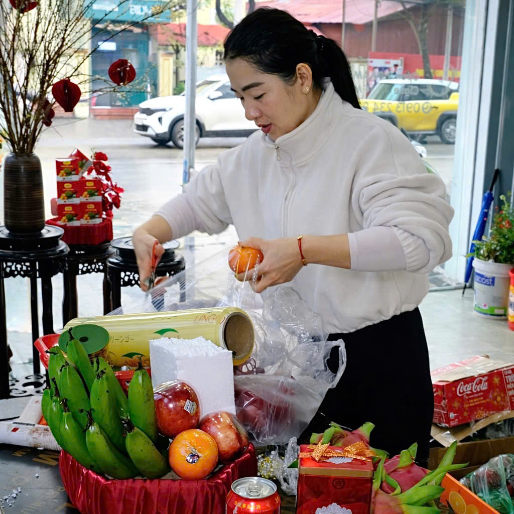 Chị Trương Thư (phường Nùng Trí Cao) chia sẻ: Những ngày cuối năm tuy khá bận rộn nhưng tôi vẫn cố gắng thu xếp thời gian để tự tay bày biện mâm ngũ quả. Thực ra việc sắp mâm cũng không quá cầu kỳ, mình có thể bày theo ý mình sao cho hài hòa, đẹp mắt và phù hợp với điều kiện gia đình. Tôi muốn tự làm để thể hiện lòng thành kính với tổ tiên và cầu mong một năm mới bình an, thuận lợi.