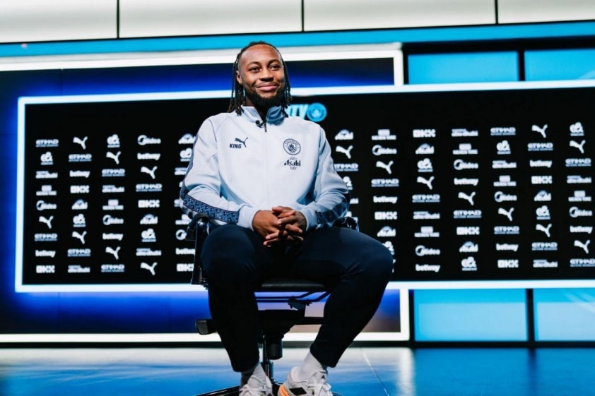 Semenyo phát biểu trong ngày ra mắt Man City (Ảnh: Man City).