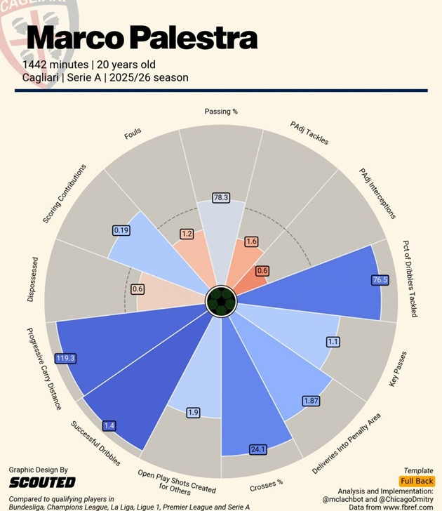 Lý do khiến Palestra trở thành mục tiêu ưu tiên nằm ở số liệu chuyên môn ấn tượng. Trong 32 lần ra sân cho Cagliari mùa này, anh đã đóng góp 1 bàn thắng và 4 đường kiến tạo, trở thành nhân tố không thể thay thế trong đội hình.