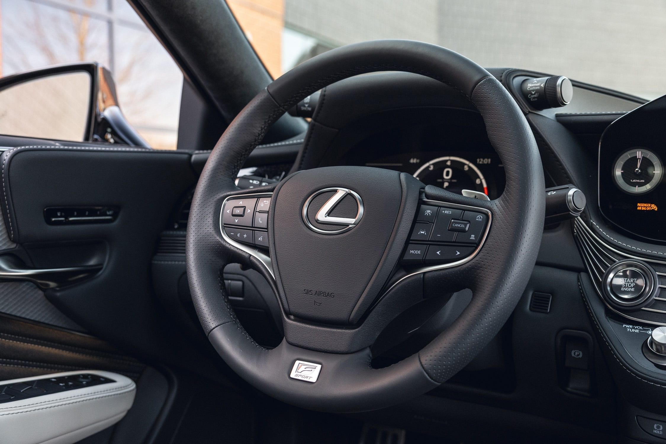 Vô lăng và đồng hồ kỹ thuật số của Lexus LS500 F Sport. Ảnh: Car and Driver.