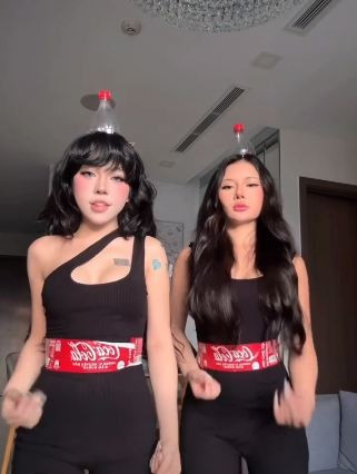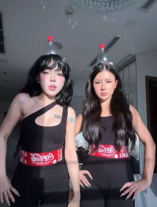 Trước đó trên trang cá nhân, cả hai từng gây chú ý khi cùng nhau hóa thân thành 2 chai Coca đầy hài hước. (Ảnh: FB Bảo Khuyên)