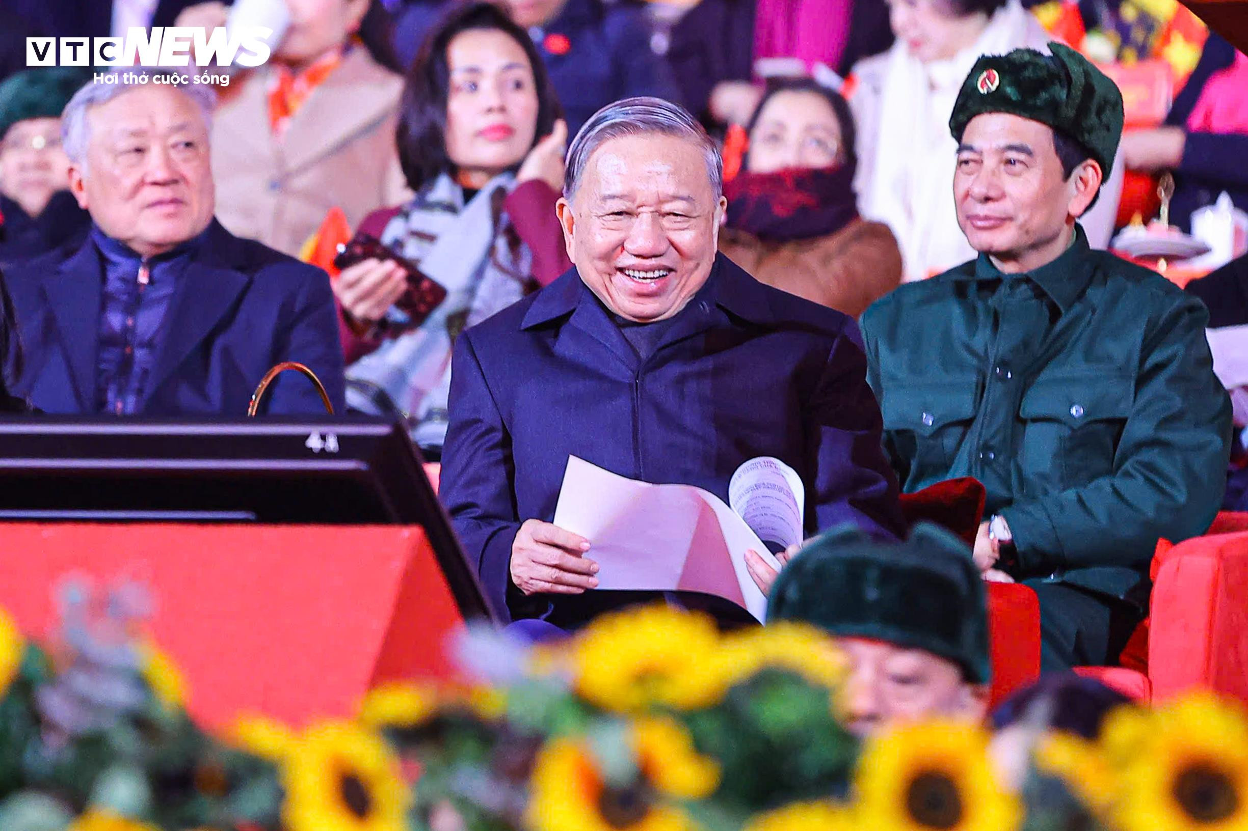 Tổng Bí thư Tô Lâm, Phó Thủ tướng Thường trực Nguyễn Hòa Bình, Bộ trưởng Bộ Quốc phòng Phan Văn Giang cùng các đại biểu dự chương trình.