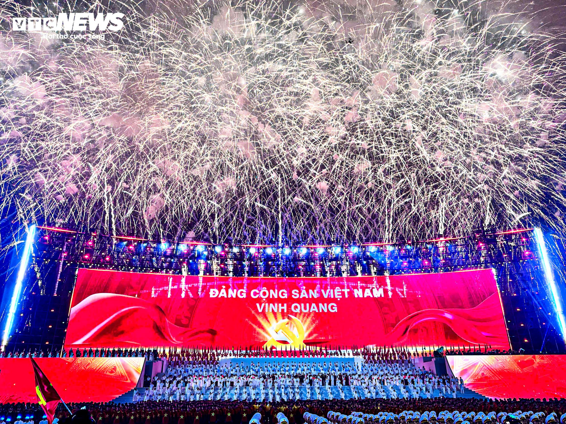 Khép lại chương trình là màn trình diễn pháo hoa nghệ thuật quy mô lớn, như một bản hòa ca hùng tráng chào mừng thành công Đại hội đại biểu toàn quốc lần thứ XIV của Đảng, mở ra kỷ nguyên phát triển mới của Việt Nam phồn vinh, hùng cường và hạnh phúc.