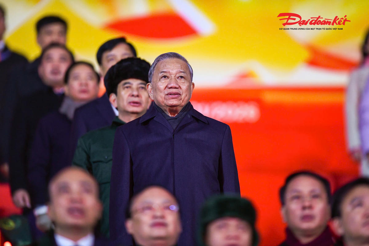 Tham dự chương trình có: Tổng Bí thư Tô Lâm; nguyên Tổng Bí thư Nông Đức Mạnh; Ủy viên Bộ Chính trị khóa XIII, Thủ tướng Phạm Minh Chính; Ủy viên Bộ Chính trị, Chủ tịch Quốc hội Trần Thanh Mẫn; Ủy viên Bộ Chính trị, Thường trực Ban Bí thư Trần Cẩm Tú; Ủy viên Bộ Chính trị, Chủ tịch Ủy ban Trung ương Mặt trận Tổ quốc Việt Nam Bùi Thị Minh Hoài; Ủy viên Bộ Chính trị khóa XIII, Phó Thủ tướng Thường trực Nguyễn Hòa Bình; Ủy viên Bộ Chính trị, Bộ trưởng Bộ Quốc phòng, Đại tướng Phan Văn Giang; các Ủy viên Bộ Chính trị, nguyên Ủy viên Bộ Chính trị; các Bí thư Trung ương Đảng và nguyên Bí thư Trung ương Đảng; các Ủy viên Trung ương Đảng và nguyên Ủy viên Trung ương Đảng...