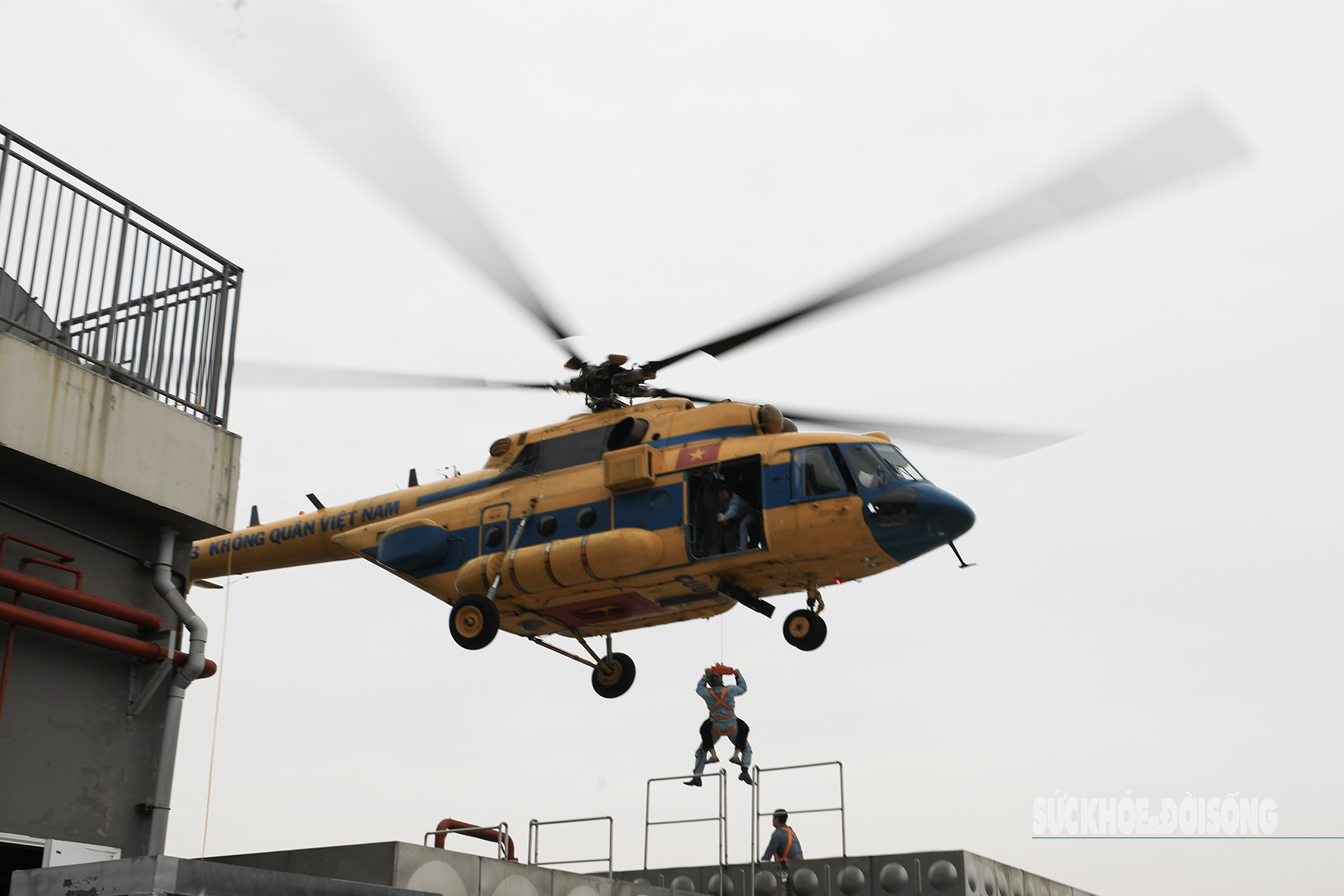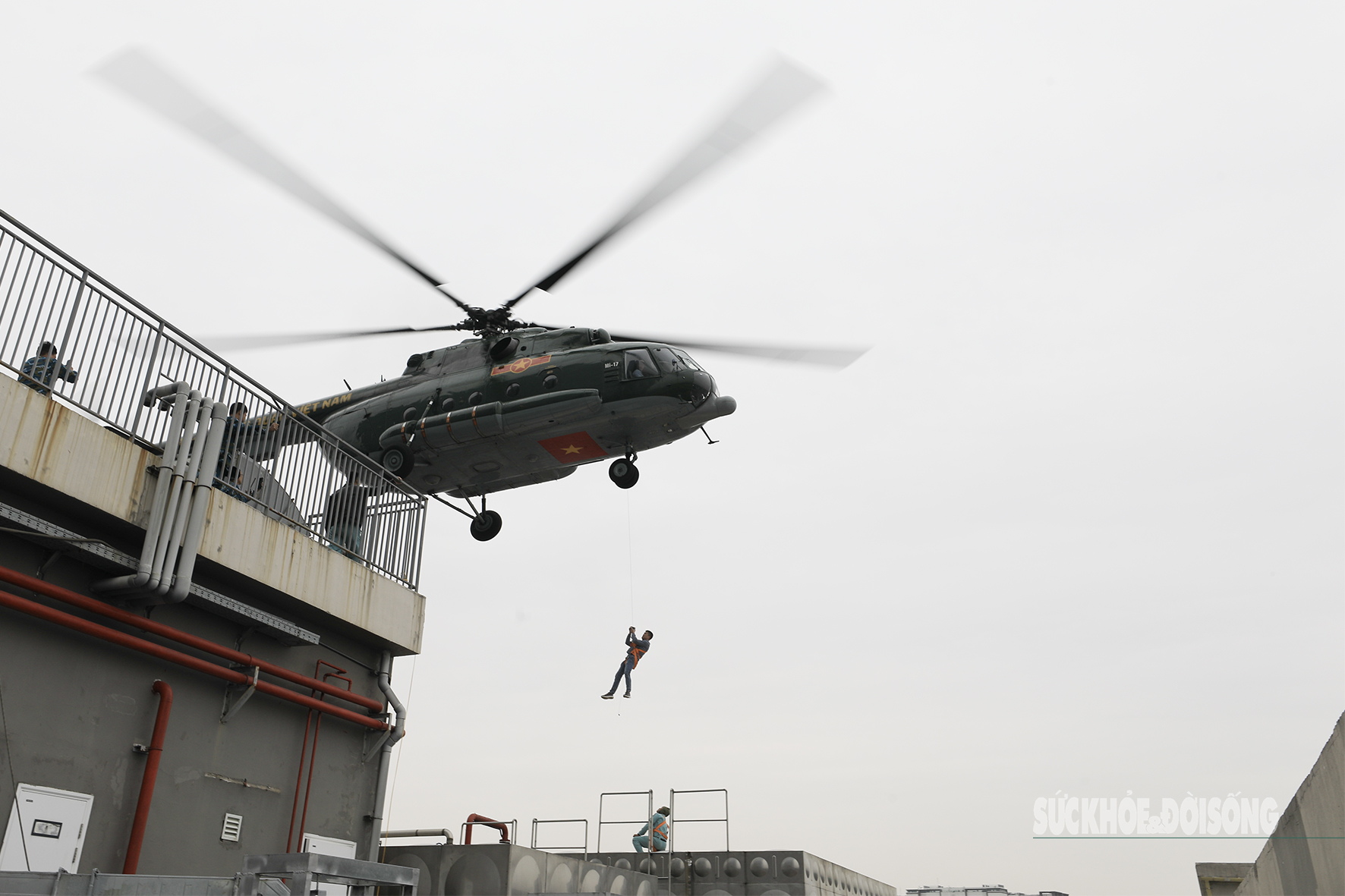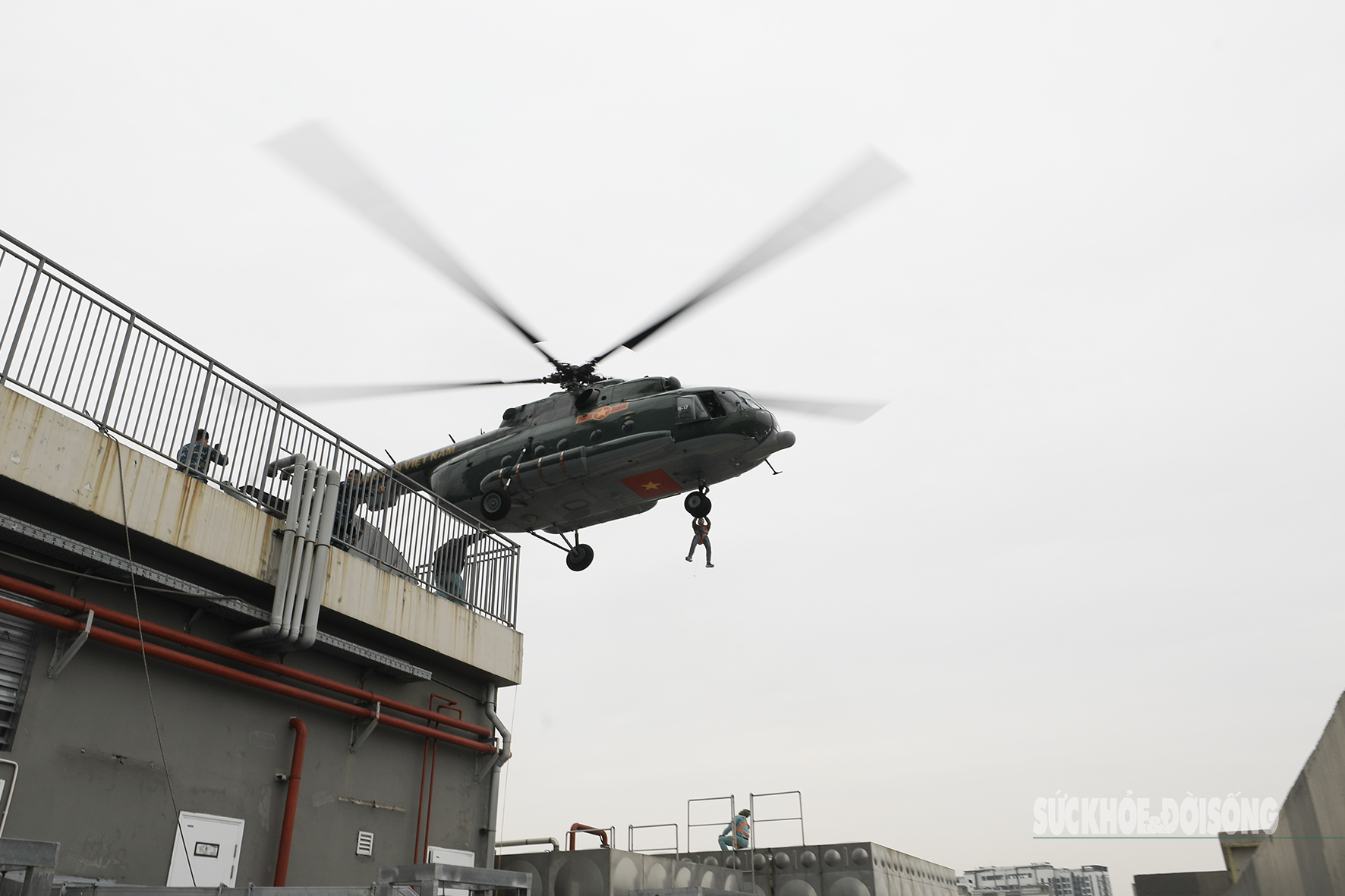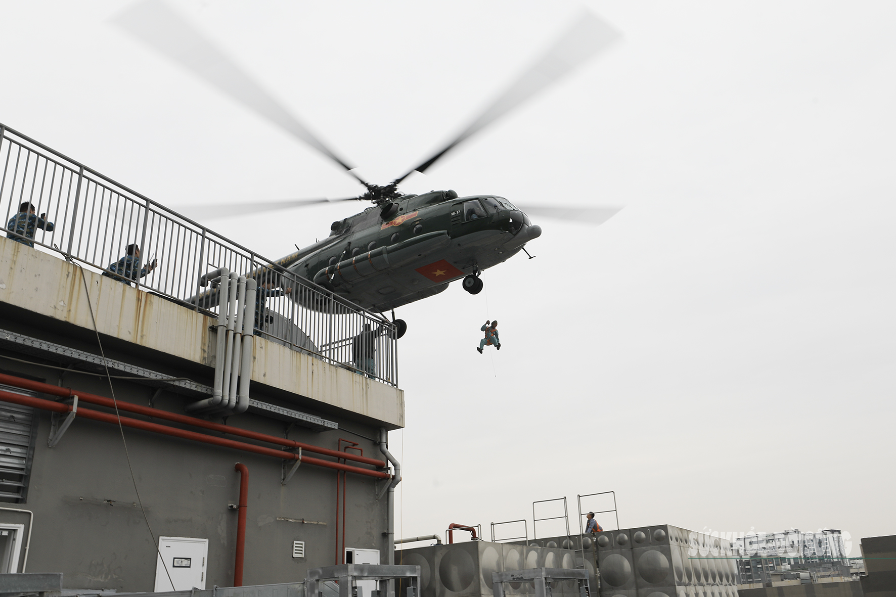 Hình ảnh ghi lại những khoảnh khắc gay cấn nhất của cuộc diễn tập: trực thăng treo lơ lửng sát mái nhà, tổ cứu hộ làm việc trong gió quẩn và độ cao lớn, các lực lượng hiệp đồng nhịp nhàng để vừa bảo đảm an toàn bay, vừa rút ngắn thời gian tiếp cận – đưa người ra khỏi vùng nguy hiểm. Đây cũng là dịp kiểm tra khả năng chỉ huy, phối hợp liên ngành và nâng cao kỹ năng thoát nạn, cứu nạn khi sự cố xảy ra.