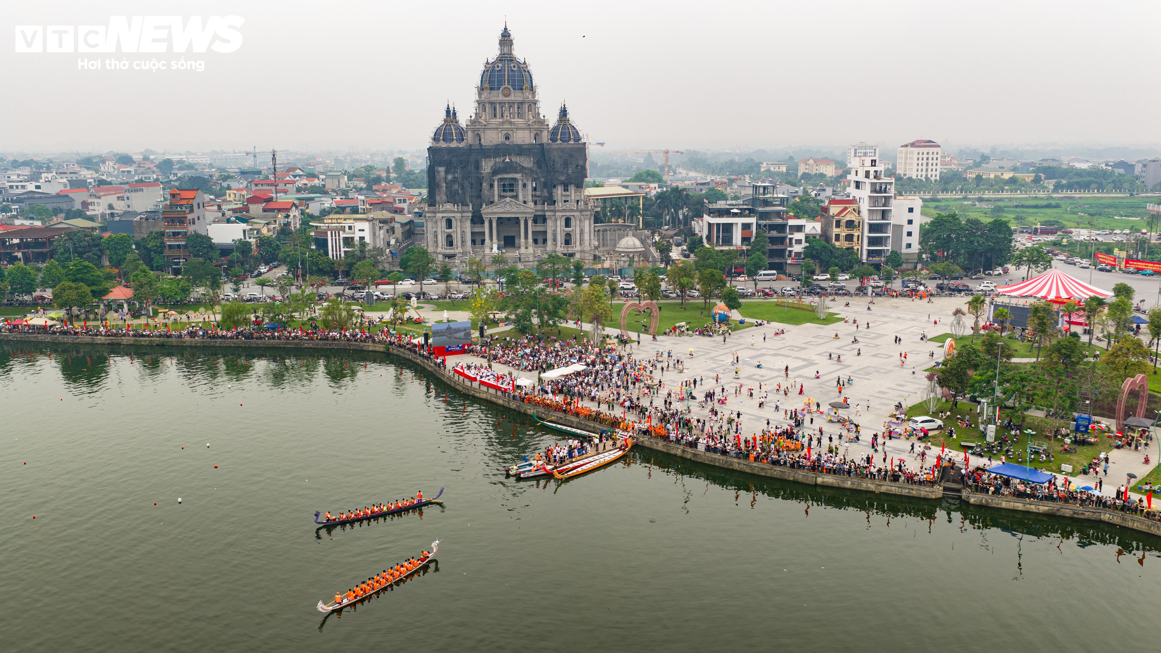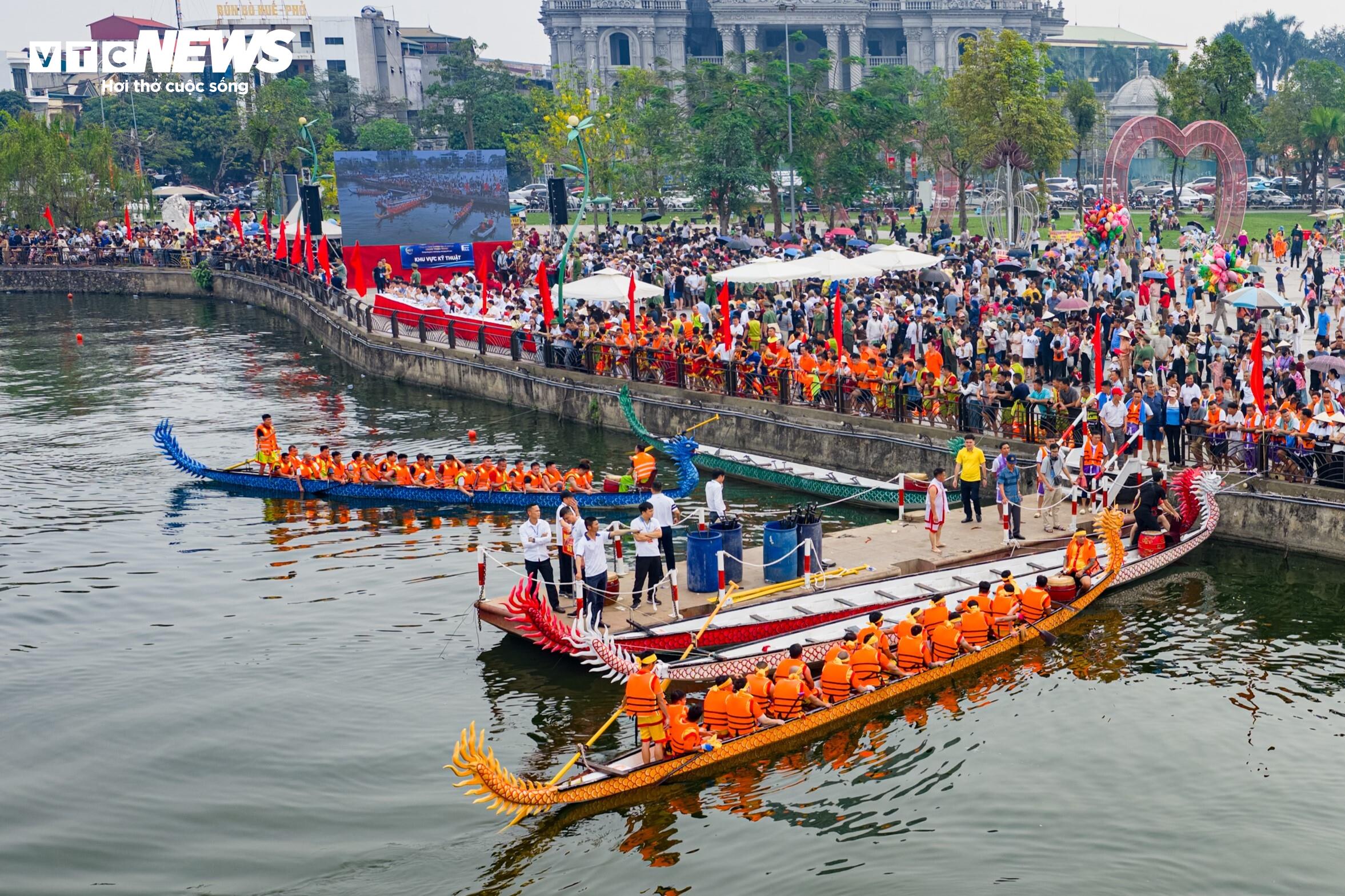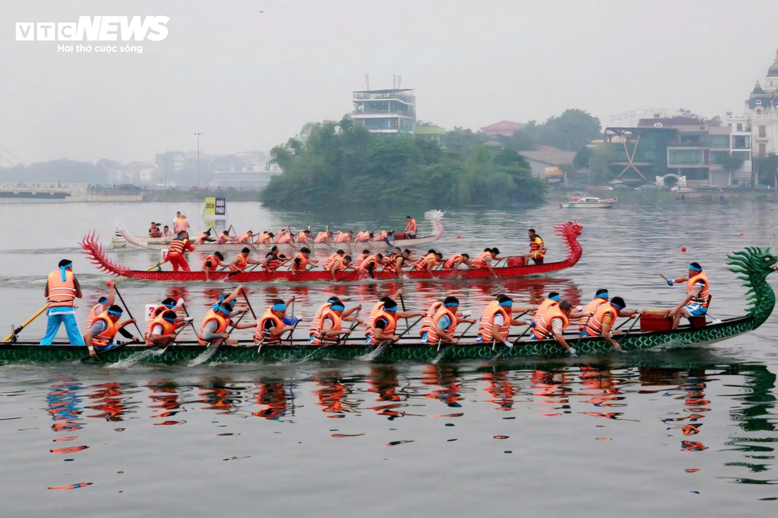 Trên mặt hồ Văn Lang, những con thuyền rẽ sóng, nhịp chèo dứt khoát, đều đặn, tạo nên những màn tranh tài kịch tính, đẹp mắt.