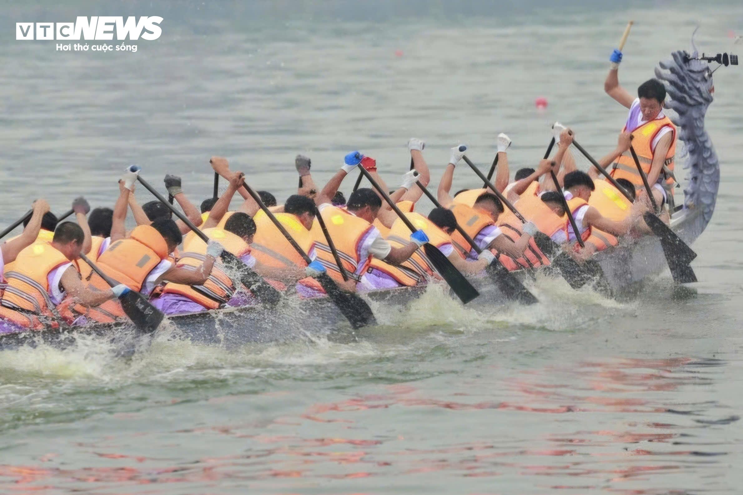 Tiếng trống thúc giục hòa cùng tiếng hò reo vang dội đã tiếp thêm động lực để các tay chèo thi đấu hết mình, cống hiến cho khán giả những đường đua hấp dẫn.
