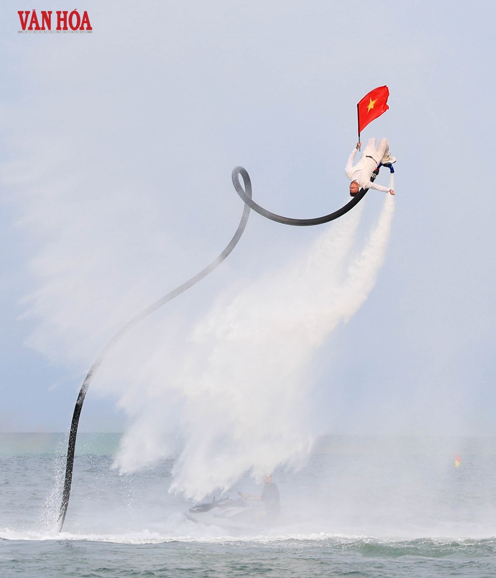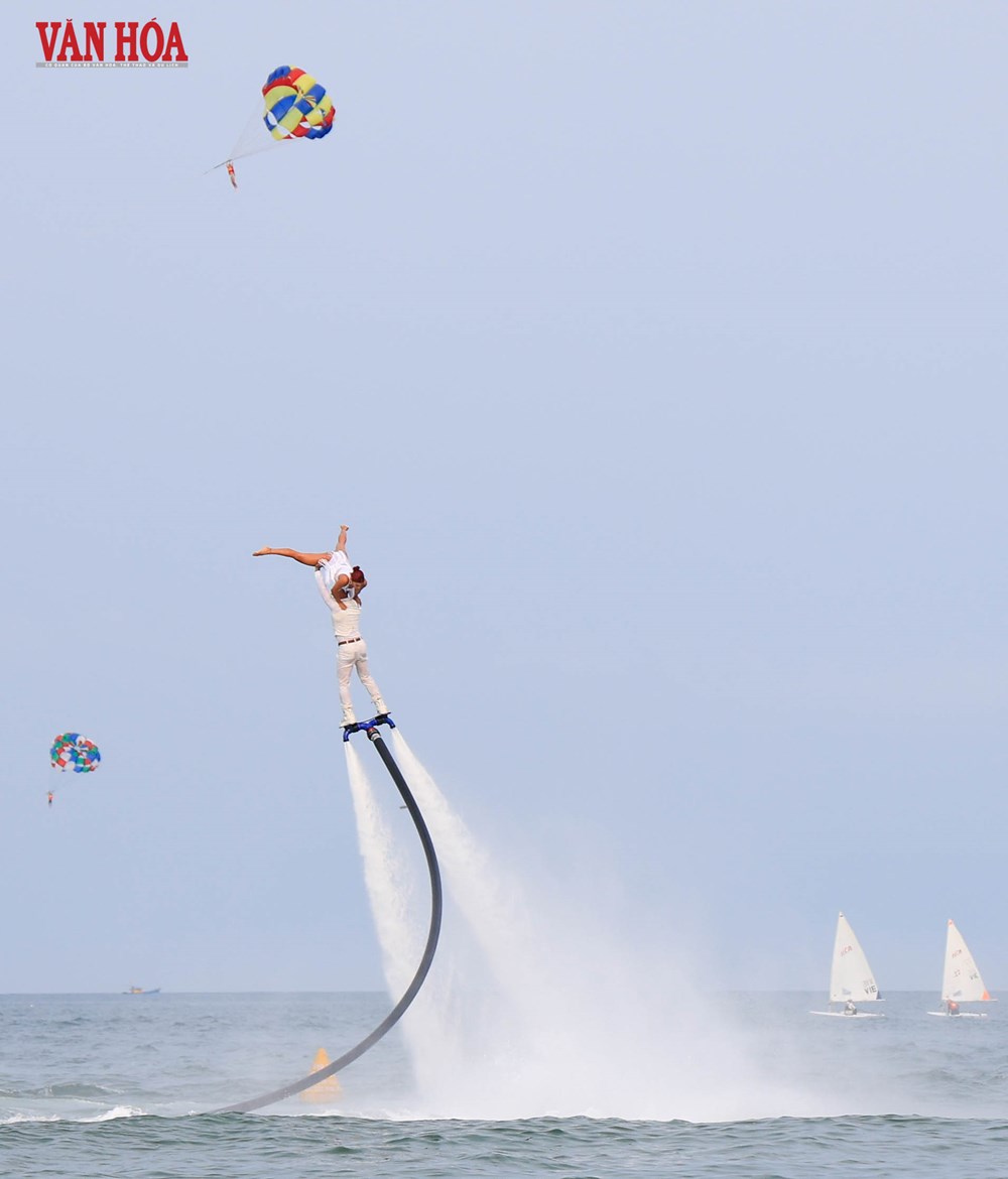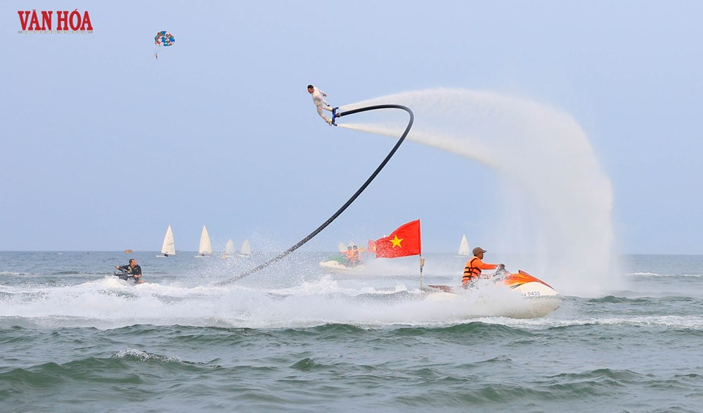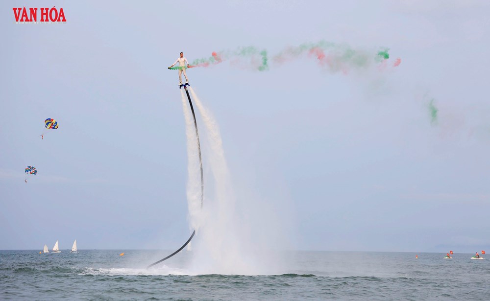 Lần đầu tiên, loại hình flyboard xuất hiện tại một bãi biển công cộng của Đà Nẵng, tạo nên điểm nhấn mới lạ trong chuỗi hoạt động khai trương mùa du lịch
