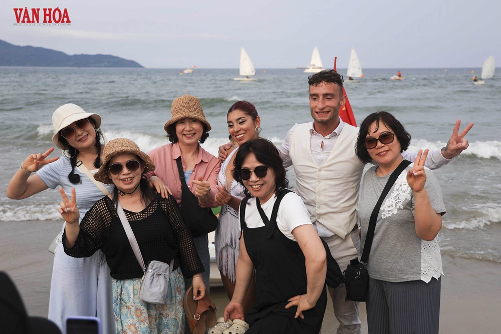 Sau khi lên bờ, nhiều du khách chụp ảnh chung với hai nghệ sĩ