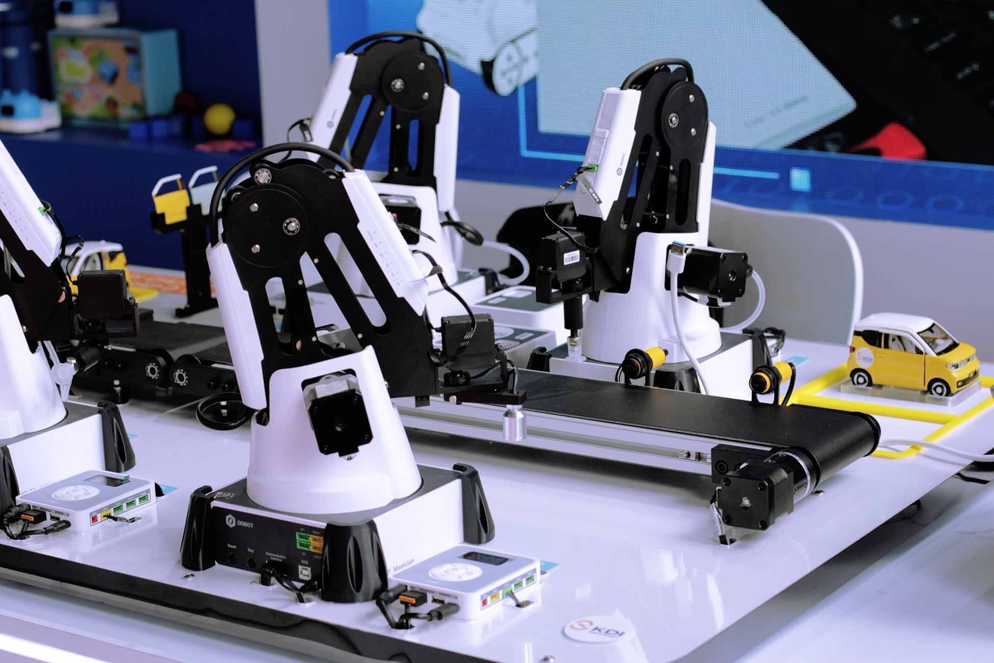 Hệ thống DOBOT Mini Car Assembly Line (Tự động hóa/Thị giác máy) giúp học sinh nắm bắt logic sản xuất thông minh, nguyên tắc của dây chuyền tự động và vai trò của Thị giác máy (AI Camera) trong việc kiểm soát chất lượng và quy trình sản xuất (Industry 4.0).