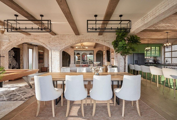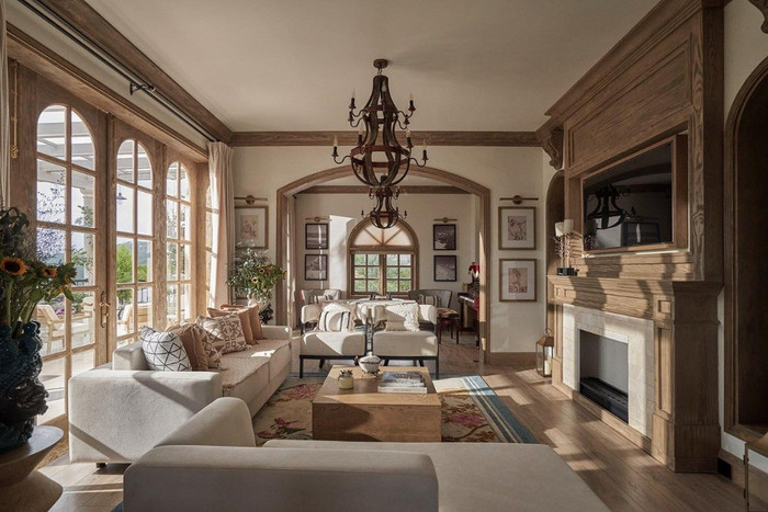 Cơ ngơi được thiết kế với không gian mở, tràn ngập ánh sáng tự nhiên, tạo cảm giác thoáng đãng. Gam màu nâu nhạt giúp ngôi nhà toát lên vẻ ấm cúng, gần gũi