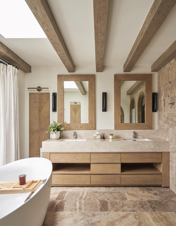 Phòng tắm gọn gàng, tối giản nhưng đầy đủ vật dụng cần thiết để chủ nhân tận hưởng những phút giây thư giãn