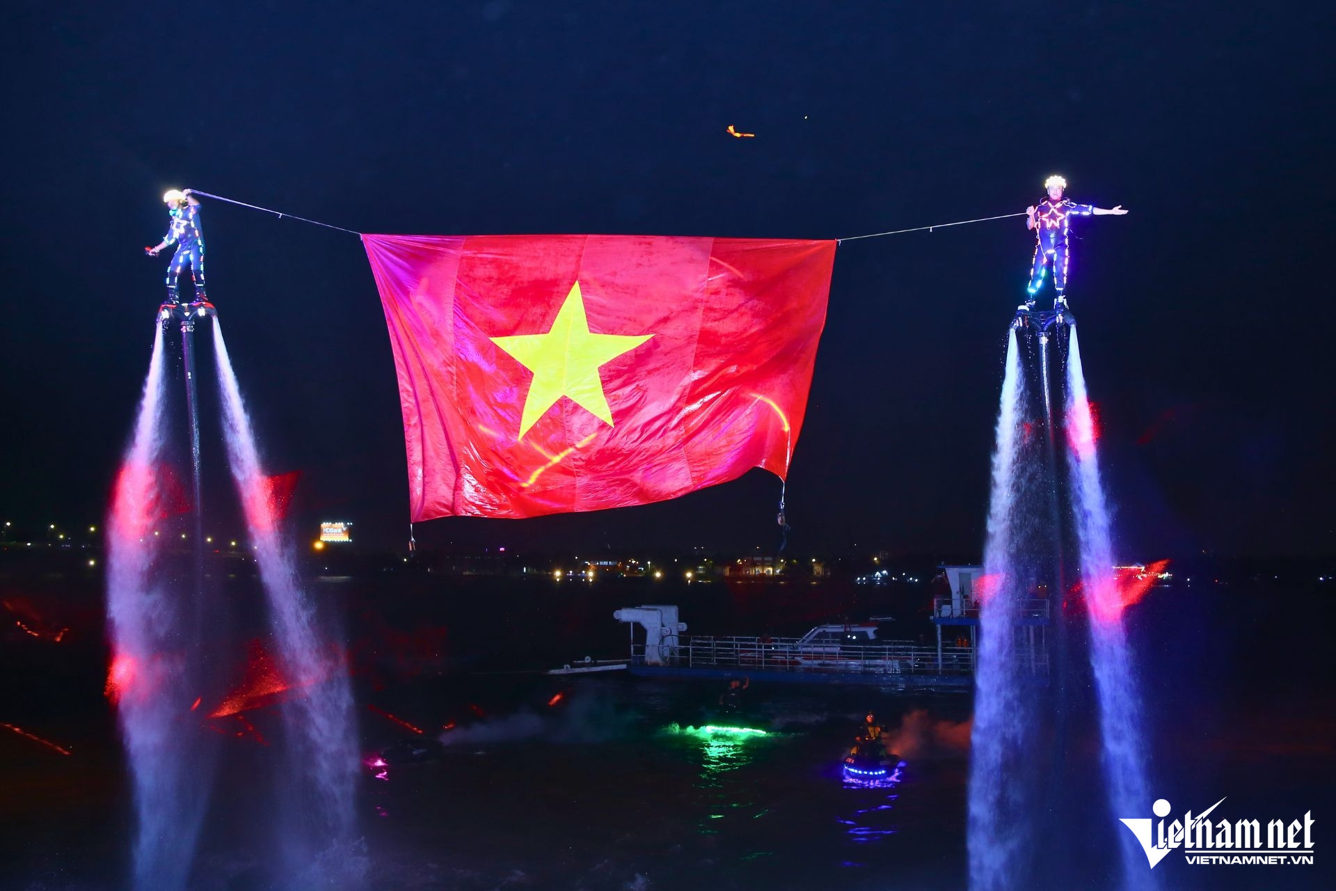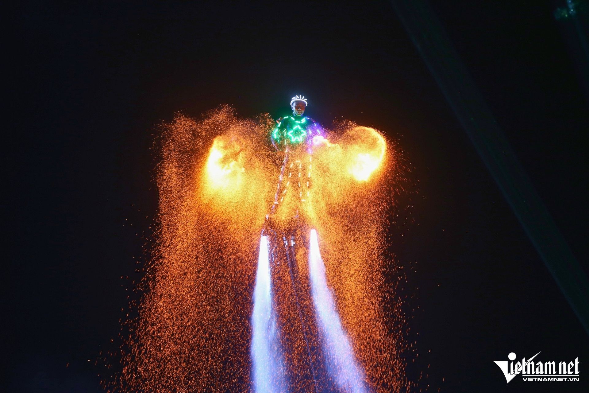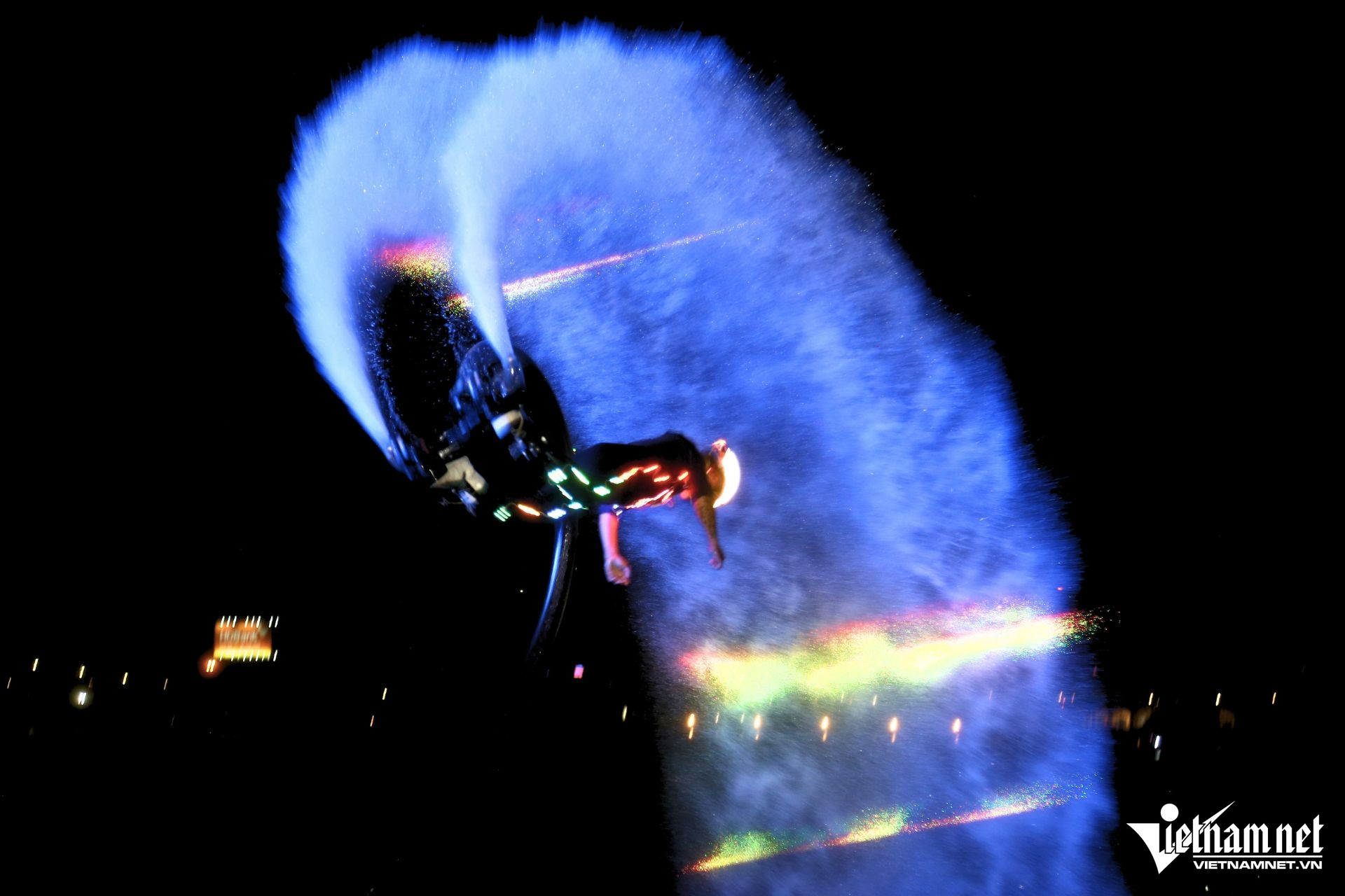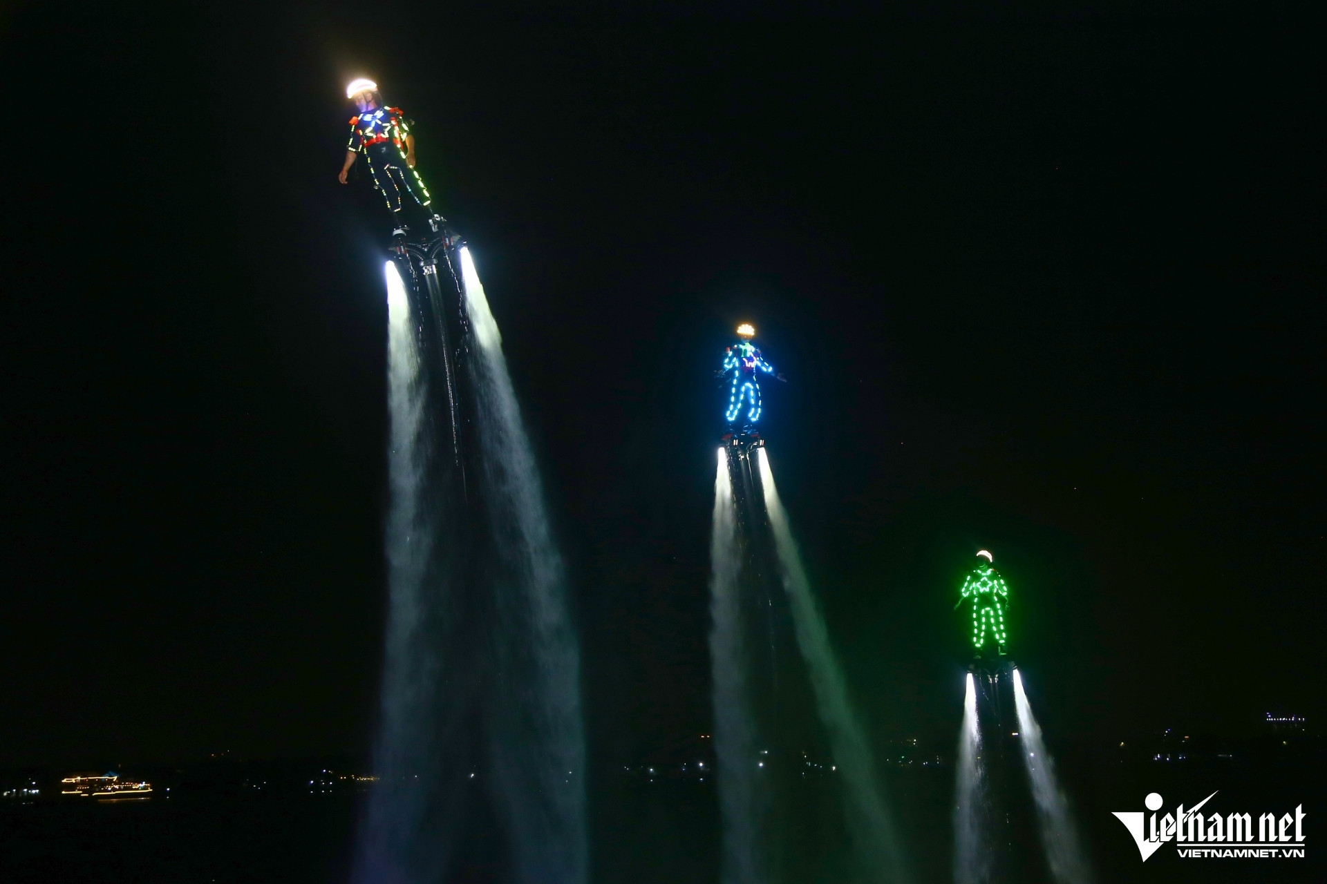Tiếp đó, khán giả được xem các vận động viên flyboard chuyên nghiệp biểu diễn với ánh sáng rất ấn tượng