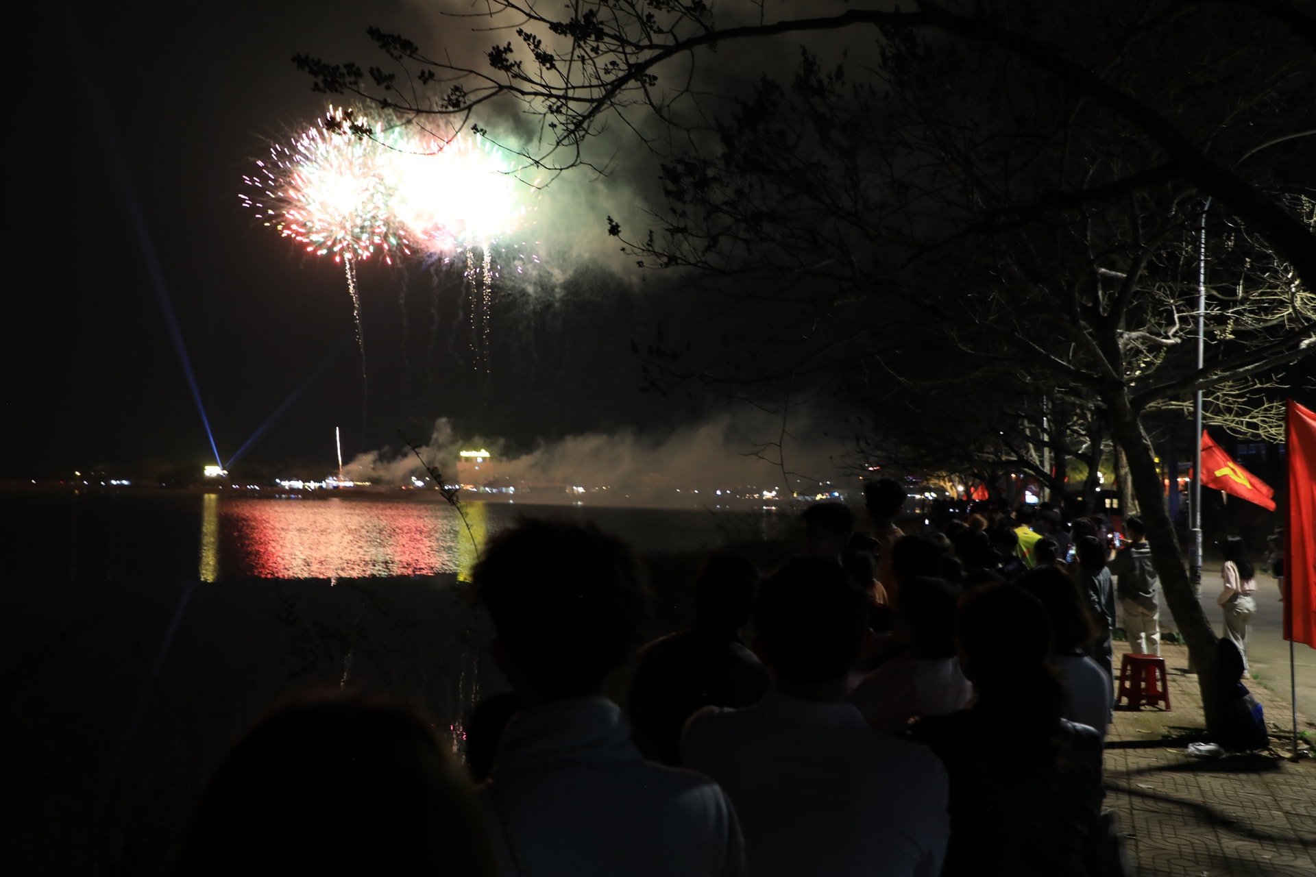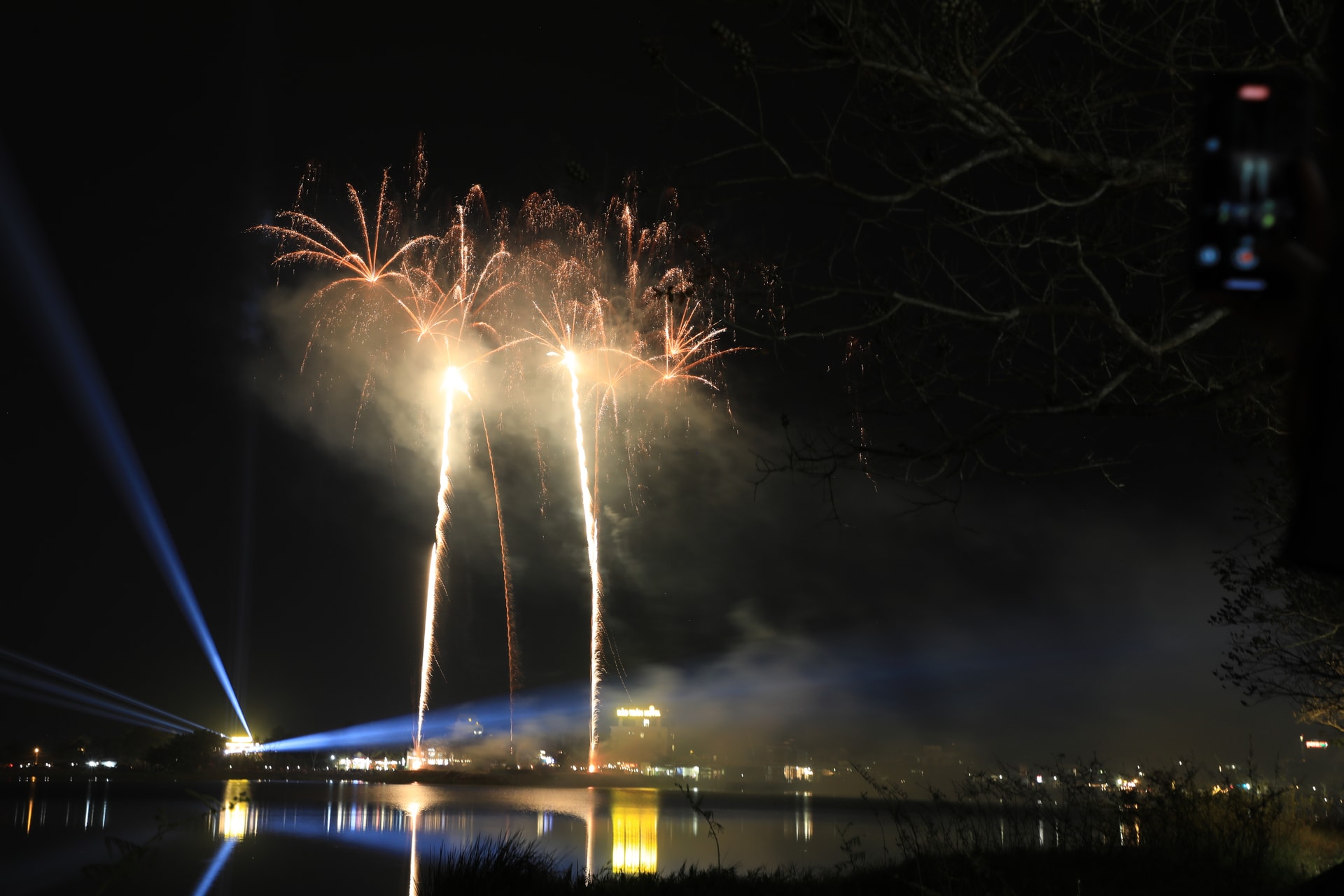 Người dân dùng điện thoại lưu lại những khoảnh khắc đẹp của chương trình bắn pháo hoa