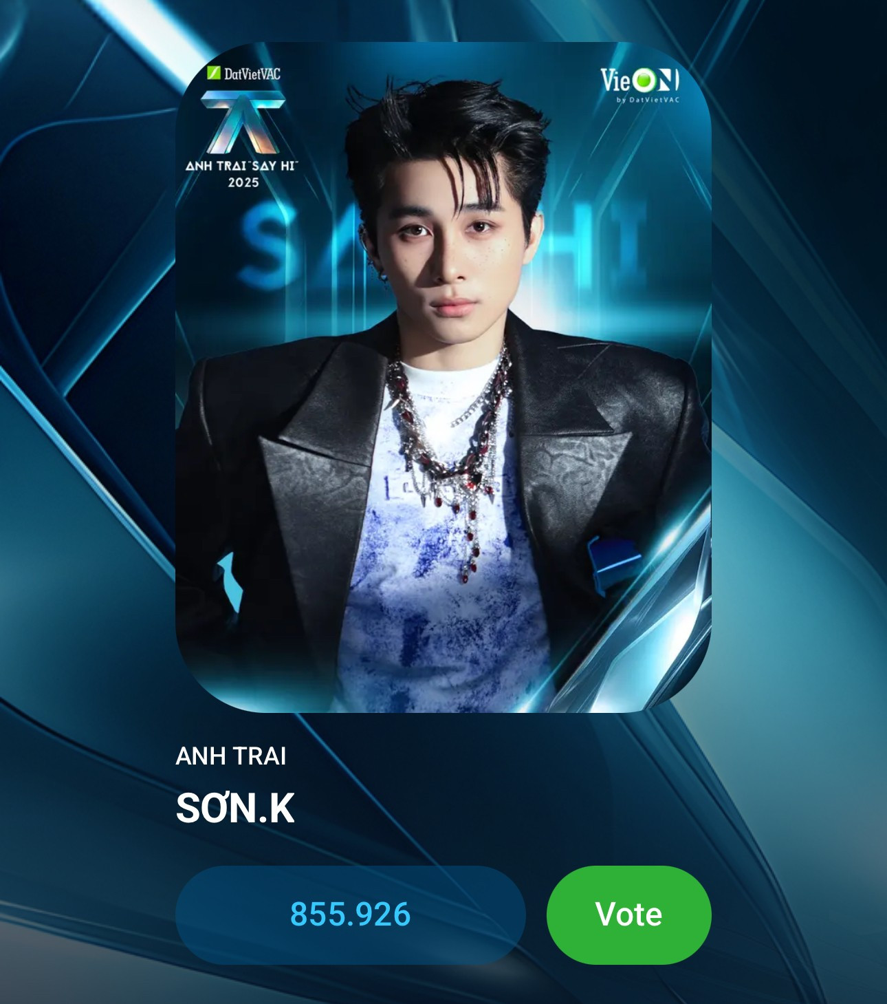 Sơn.K đang có hơn 855 nghìn lượt vote (tính đến ngày 4/12).