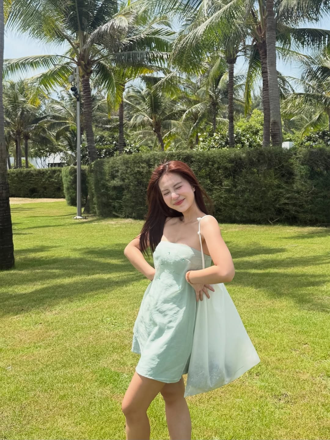 Trong những bức ảnh được chia sẻ, Mẫn Tiên xuất hiện giữa không gian xanh mướt của cỏ cây, dưới ánh nắng vàng rực rỡ. Cô chọn cho mình trang phục nhẹ nhàng với chiếc váy hai dây màu xanh mint xinh xắn, mát mắt. (Ảnh: IGNV)