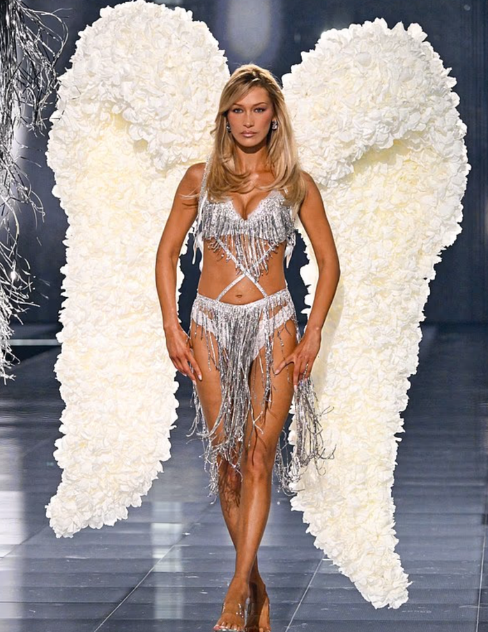 Chương trình năm nay được phát sóng trực tiếp trên Amazon Prime Video, mang lại cảm giác hoài cổ sang trọng khi thương hiệu quay lại phong cách quyến rũ đặc trưng, sau thời gian thử nghiệm hướng đi thức tỉnh mang tính đa dạng hóa hình ảnh. Trong khung cảnh ánh sáng rực rỡ và âm nhạc sôi động, siêu mẫu Bella Hadid xuất hiện đầy tự tin, khẳng định phong độ đỉnh cao của một trong những siêu mẫu được yêu thích nhất hành tinh.