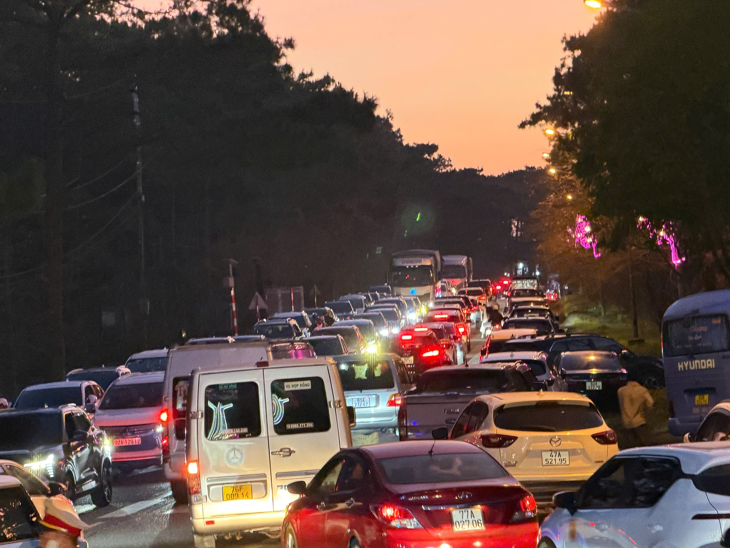 Ghi nhận trong chiều tối cùng ngày, một số tuyến đường tại Khu Du lịch Măng Đen xảy ra tình trạng ùn ứ cục bộ do lượng khách tăng cao.