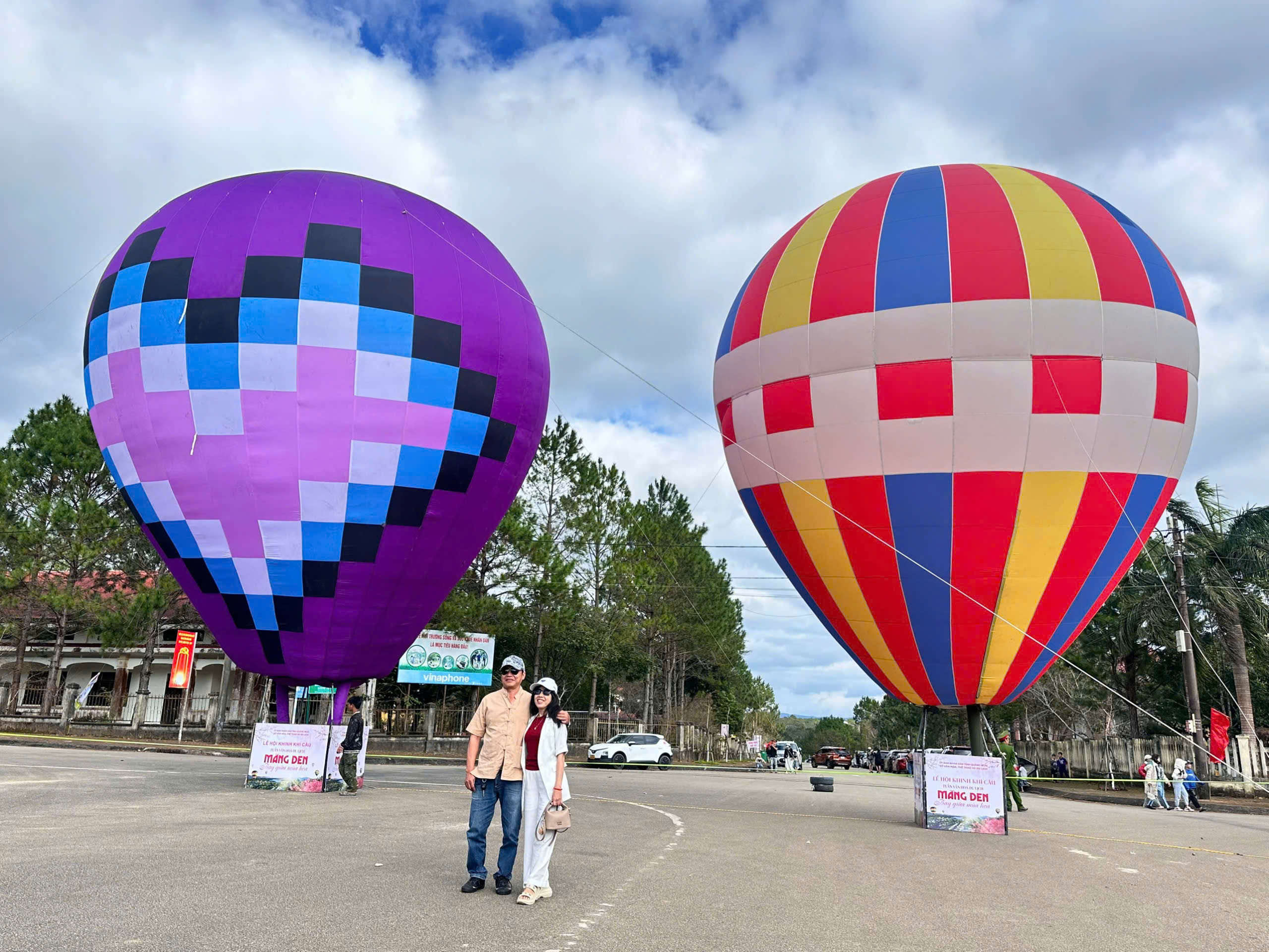 Người dân chụp ảnh kỷ niệm bên khinh khí cầu