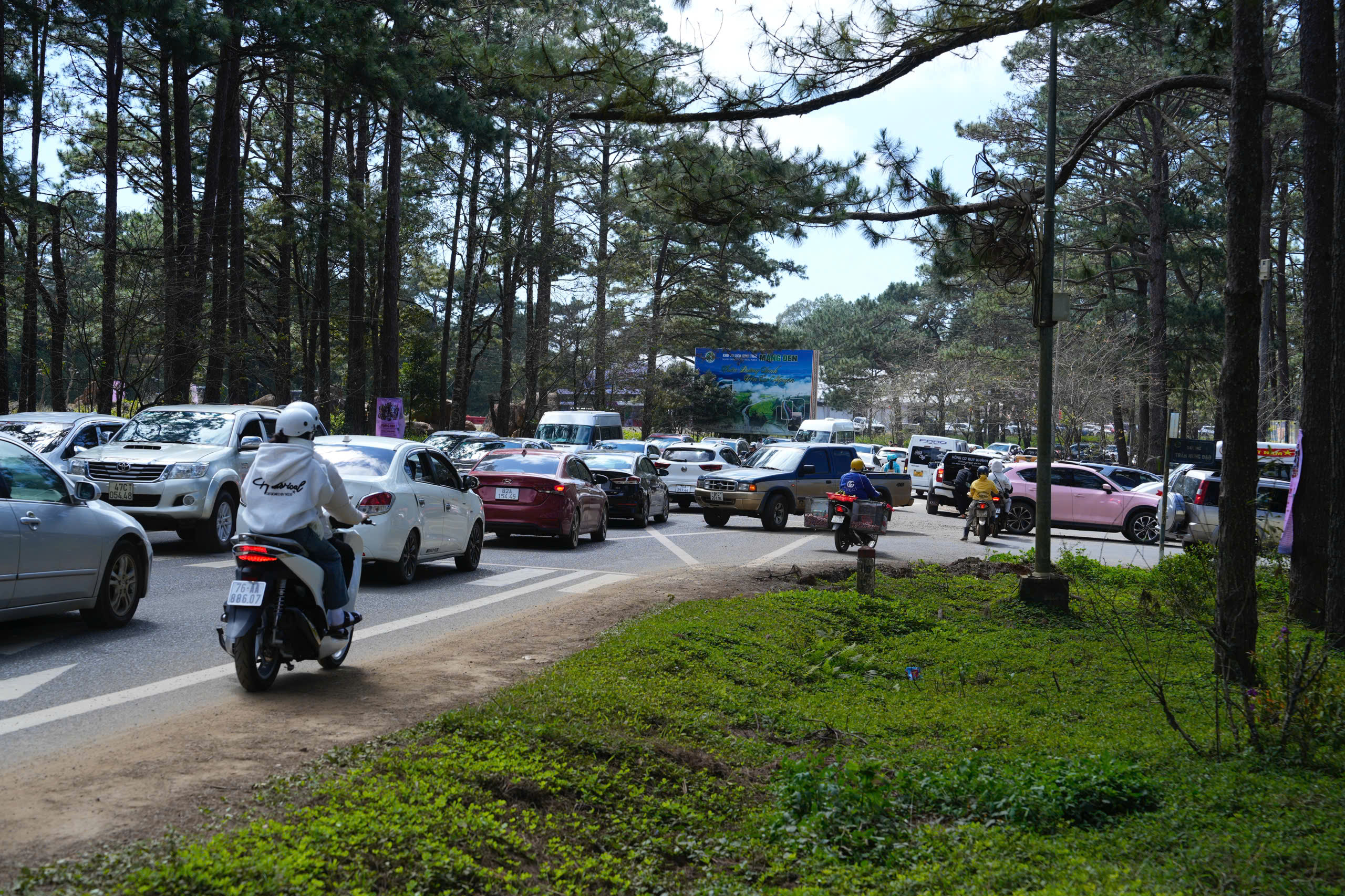 Việc di chuyển của các phương tiện gặp nhiều khó khăn do lượng du khách tăng cao. Ảnh: VIẾT HÀ