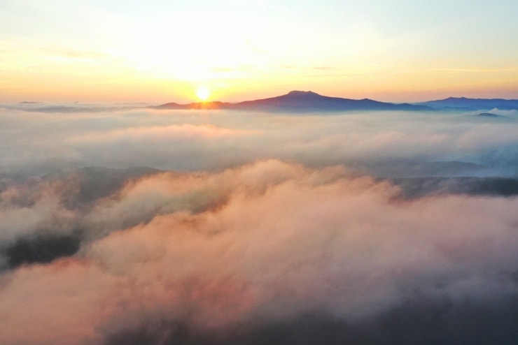 Bình minh tại Măng Đen đến chậm rãi và nhẹ nhàng. Từ phía chân trời, những tia nắng đầu ngày len lỏi qua màn sương lãng đãng, rải ánh hồng phơn phớt lên thung lũng bồng bềnh giữa biển mây. Trong không gian tĩnh lặng, chỉ có tiếng chim rừng gọi nhau và tiếng lá thông xào xạc, tạo nên một bản nhạc nền dịu êm cho vùng cao nguyên.