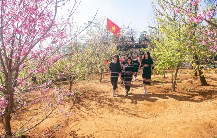 Đặc biệt, mùa xuân tại đây được tô điểm bởi sắc hồng thanh khiết của hoa mai anh đào. Những cánh hoa mỏng manh rung rinh trong gió sớm, chạm khẽ vào mặt đất còn ẩm sương. Khoảnh khắc này không chỉ thu hút khách tham quan mà còn tạo nên sợi dây kết nối giữa con người và thiên nhiên nguyên sơ.