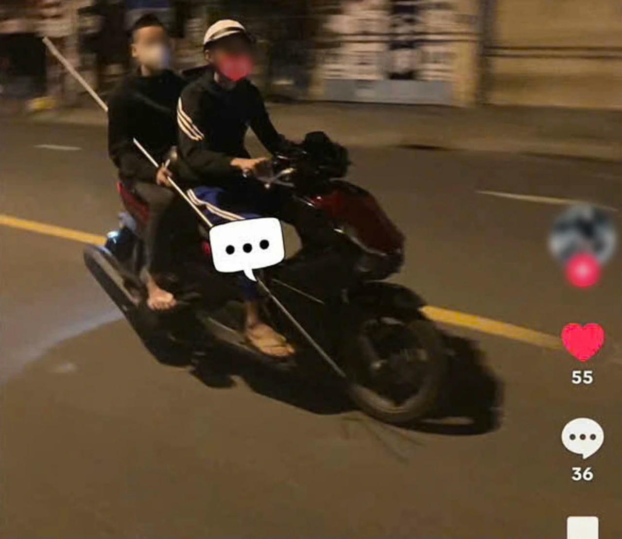 Nhóm thiếu niên mang gậy 3 chĩa, liềm đi xe máy quay clip đăng mạng xã hội, bị công an xử lý