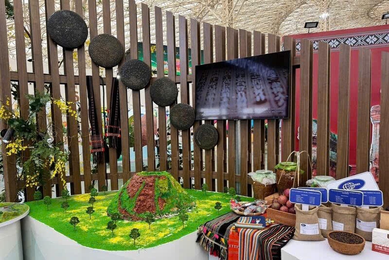Không gian được chia làm 3 phân khu chủ đạo; ở khu “Đại ngàn - Nguồn cội của sức sống”, hương cà phê rang quyện trong gió gợi nhớ những đồi cà phê mù sương ở cao nguyên M’nông, Di Linh. Hình ảnh hùng vĩ của Tây Nguyên, nơi sản sinh ra những đặc sản nông nghiệp như cà phê, cây ăn quả, sản phẩm OCOP. Mô hình Công viên Địa chất toàn cầu UNESCO Đắk Nông thu hút ánh nhìn của du khách với hình ảnh núi lửa, đá bazan và trầm tích như biểu tượng cho sức mạnh tự nhiên bền bỉ.