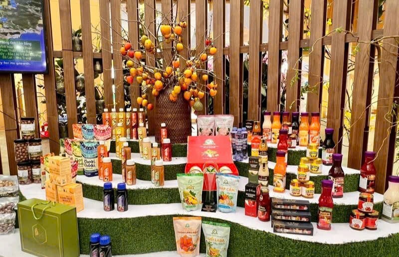 Sản phẩm thương hiệu "Đà Lạt - Kết tinh kỳ diệu từ đất lành" được trung bày trong không gian đậm sắc Thu