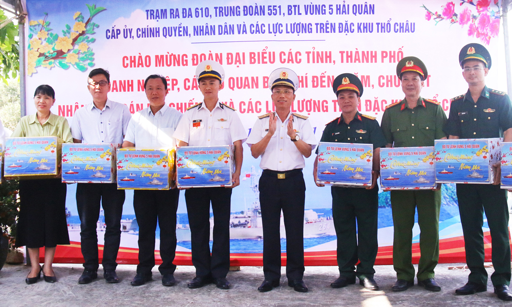 Khi màn pháo hoa trên “đảo ngọc” Phú Quốc tỏa sáng rực rỡ trên bầu trời, cũng là lúc hai chiếc tàu vận tải đổ bộ đa năng mang số hiệu 527 và 528 thuộc Lữ đoàn 127 (Vùng 5 Hải quân) cất vang tiếng còi rời bến, rẽ sóng ra khơi. Tàu đưa đoàn công tác gồm hơn 200 thành viên cùng nhiều phần quà Tết từ đất liền đến với cán bộ, chiến sĩ, Nhân dân và các lực lượng đang làm nhiệm vụ trên vùng biển đảo Tây Nam của Tổ quốc. Suốt hành trình hơn 365 hải lý (hơn 650 km), hai con tàu lần lượt đưa đoàn công tác đến thăm, chúc Tết tại các đảo Thổ Chu, Hòn Khoai, Hòn Chuối, Nam Du, Hòn Đốc rồi trở về Phú Quốc.