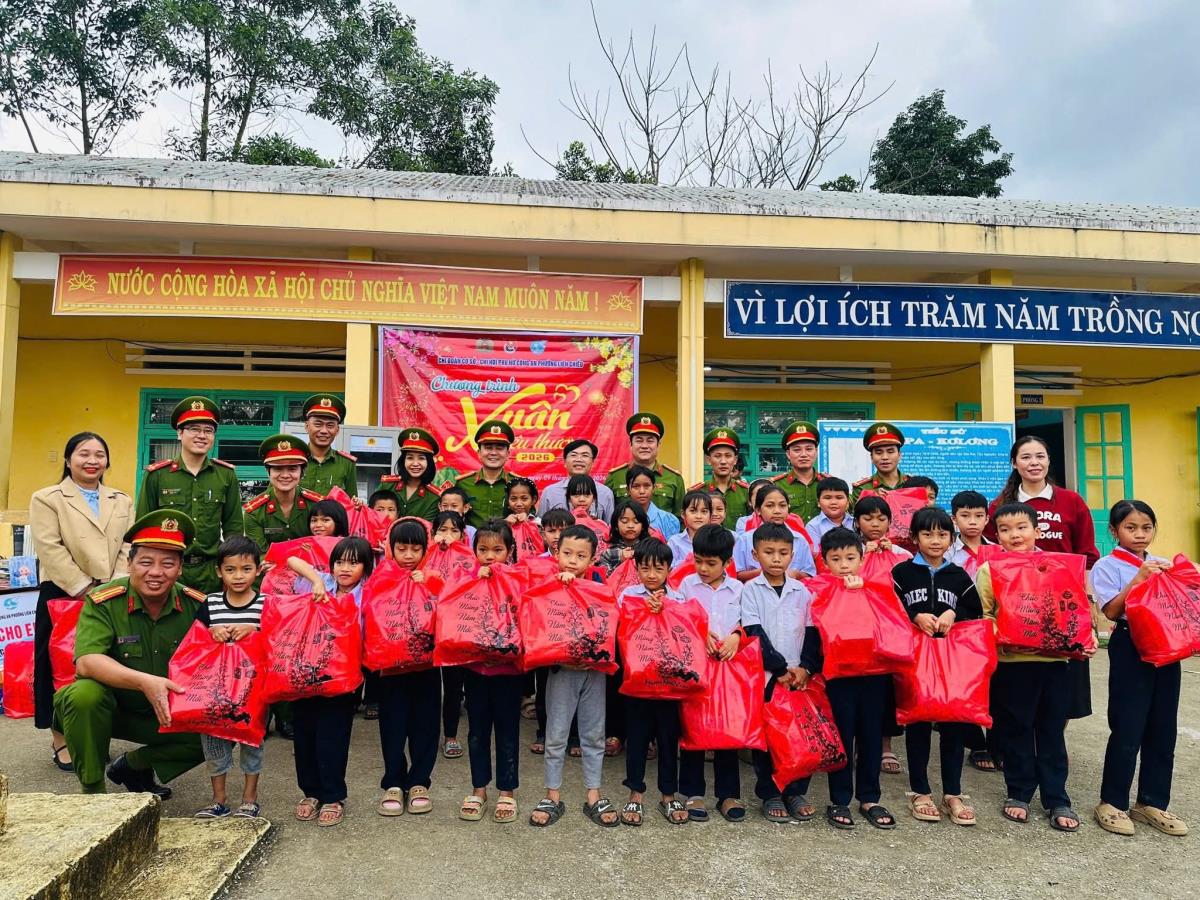 Tại Trường Tiểu học Kpa Kơlơng, đoàn đã trao tặng tủ sách cho em, sách vở, dụng cụ học tập, bánh kẹo, sữa… với tổng trị giá trên 20 triệu đồng; đồng thời trao 60 suất quà trị giá 30 triệu đồng cho các hộ gia đình có hoàn cảnh khó khăn trên địa bàn xã. Hoạt động mang ý nghĩa thiết thực, góp phần sẻ chia khó khăn, đồng thời thắt chặt mối quan hệ gắn bó giữa lực lượng Công an và nhân dân các xã vùng cao.