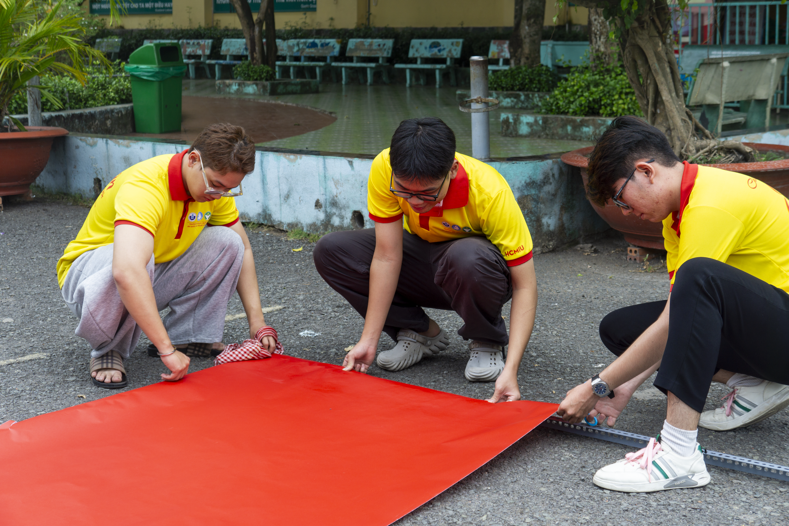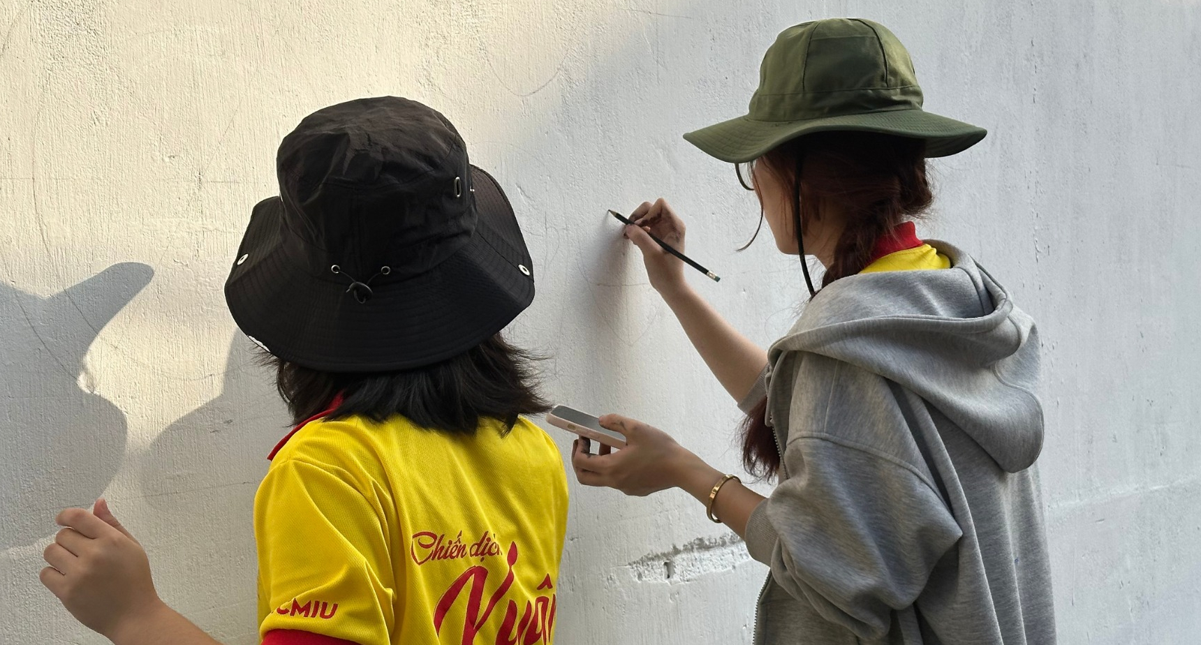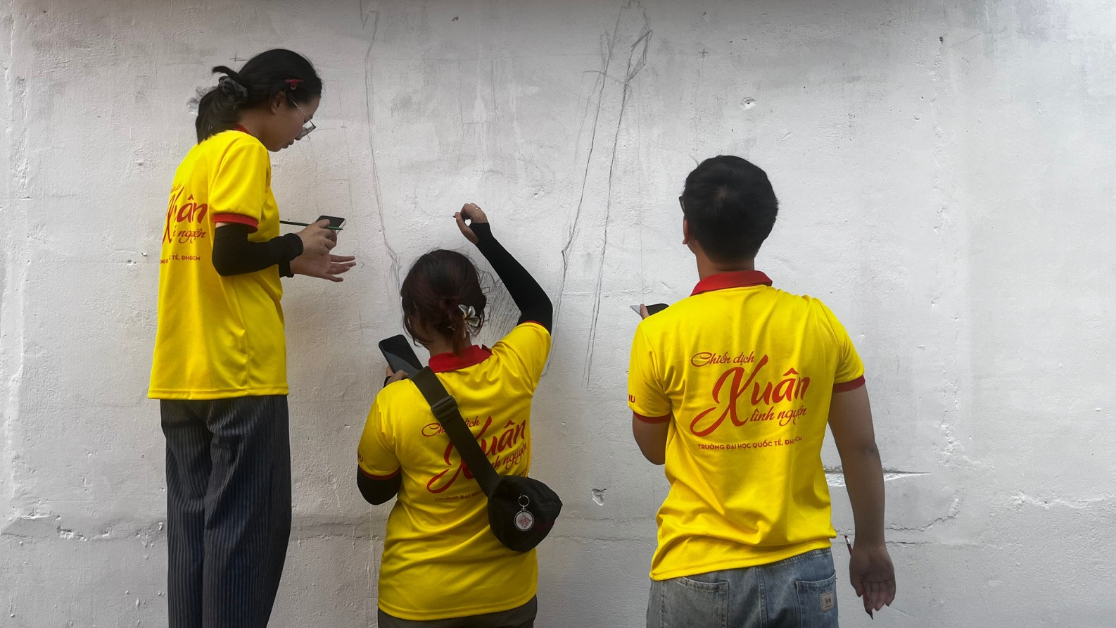 Vẽ tranh tường, trang trí góc xuân tại xã Tân Nhựt, TPHCM. Ảnh: Nhân vật cung cấp.