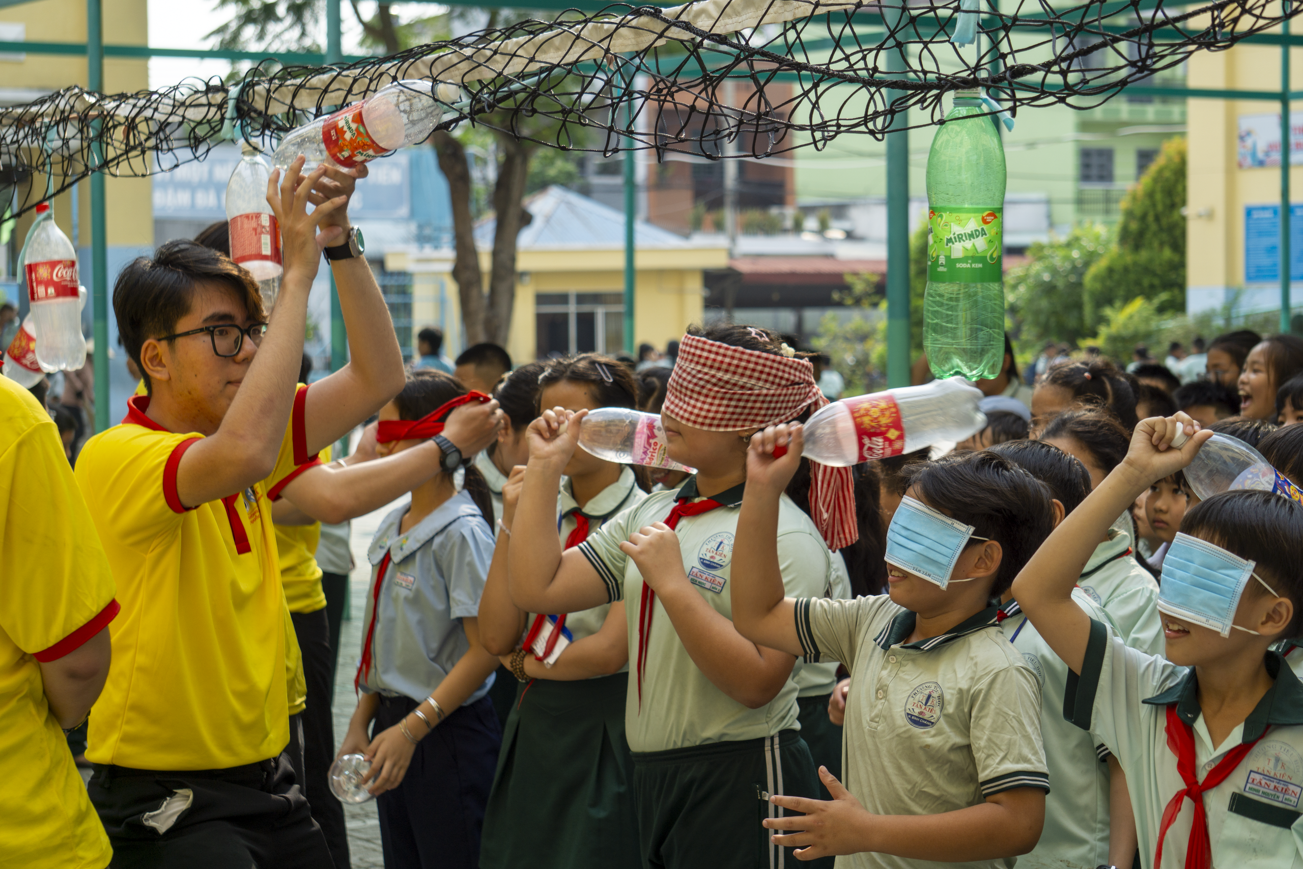 Tổ chức sân chơi và tặng quà Tết cho các em học sinh tiểu học. Ảnh: Nhân vật cung cấp.
