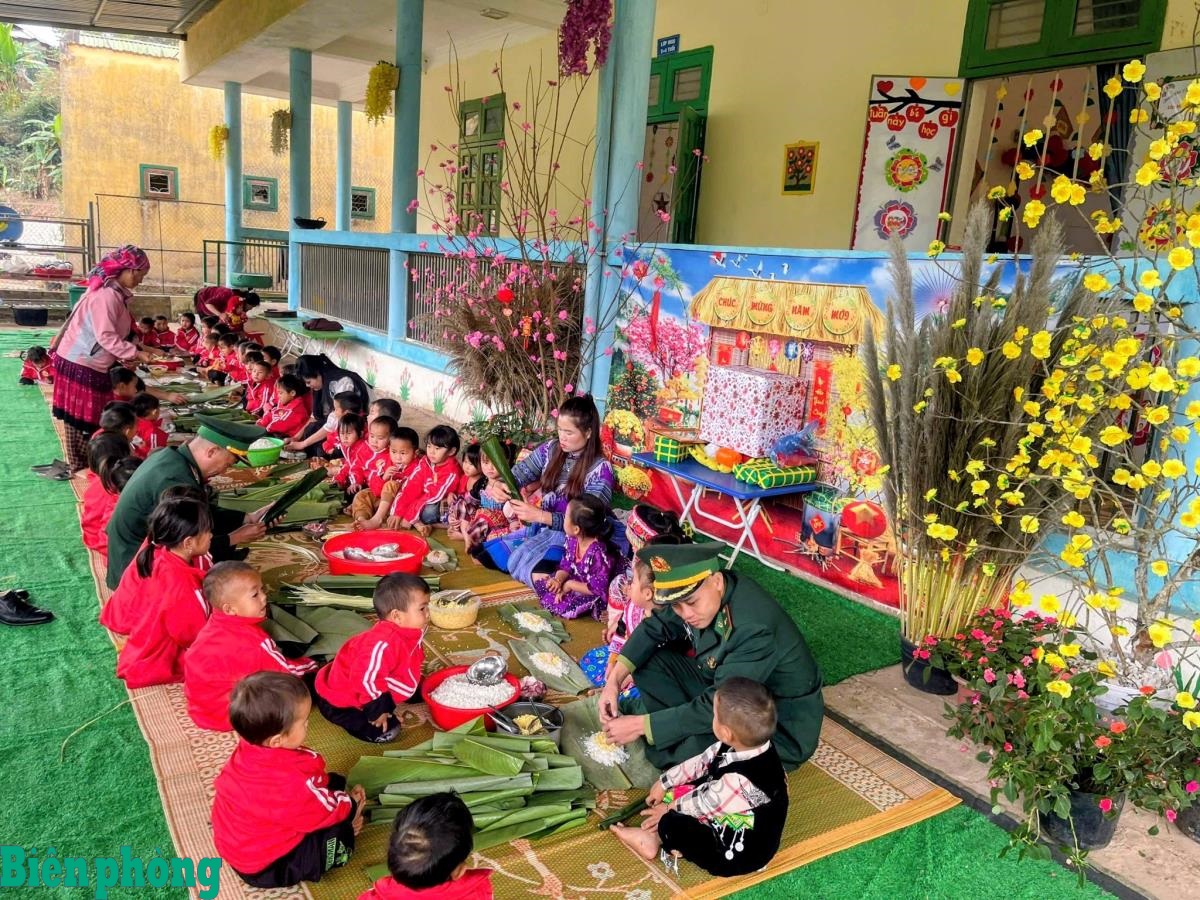 Chi đoàn Đồn Biên phòng Nậm Nhừ, Bộ đội Biên phòng tỉnh Điện Biên phối hợp với Trường Mầm non Nậm Nhừ, xã Nà Hỳ, tỉnh Điện Biên tổ chức hoạt động trải nghiệm với chủ đề “Ngày Tết quê em” cho các cháu học sinh tại điểm trường Mầm non Nậm Chua 1, xã Nà Hỳ, góp phần mang không khí Tết cổ truyền ấm áp đến với trẻ em vùng biên giới còn nhiều khó khăn. Ảnh: Xuân Điềm