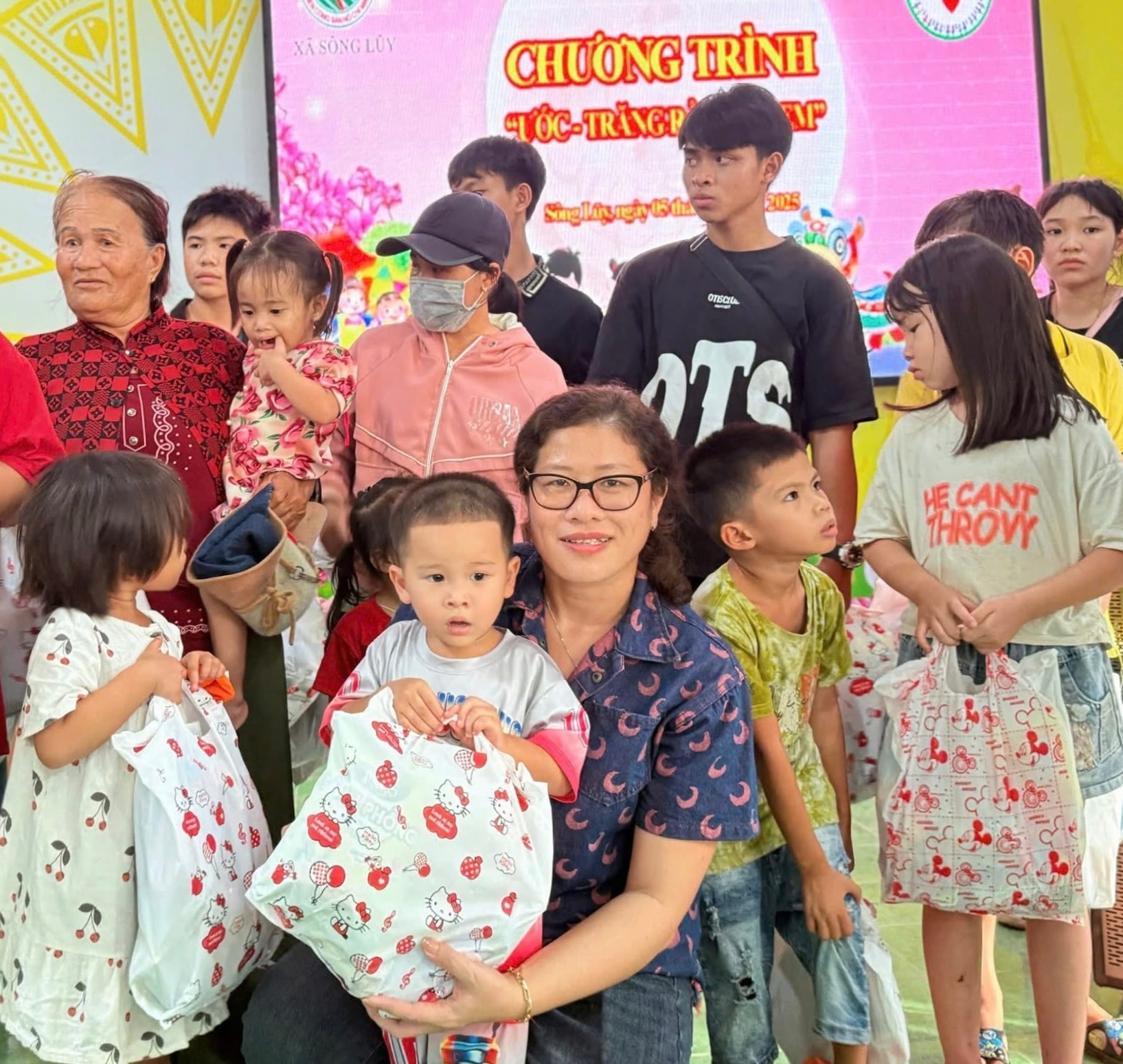 Cũng trong dịp Tết Trung thu, tại Trường TH & THCS Phan Tiến, thôn Tiến Đạt, Đoàn xã Sông Lũy đã phối hợp cùng Nhóm thiện nguyện Bếp cơm yêu thương tổ chức chương trình "Ánh trăng yêu thương lần 9" với sự tham gia của 500 em thiếu nhi trên địa bàn.