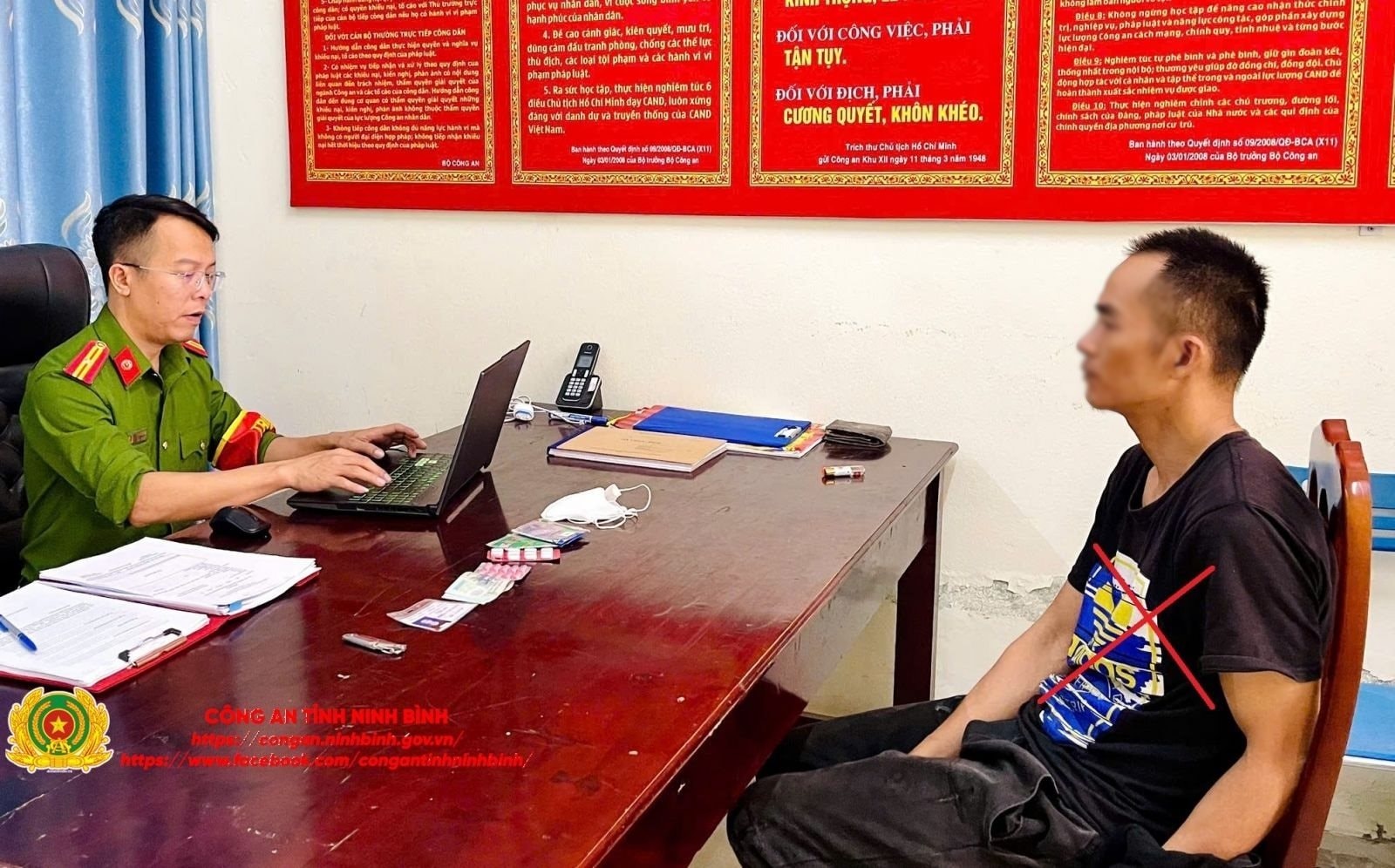 Công an phường Hà Nam (tỉnh Ninh Bình) làm việc với đối tượng Phạm Văn Thái. (Ảnh: Công an Ninh Bình)