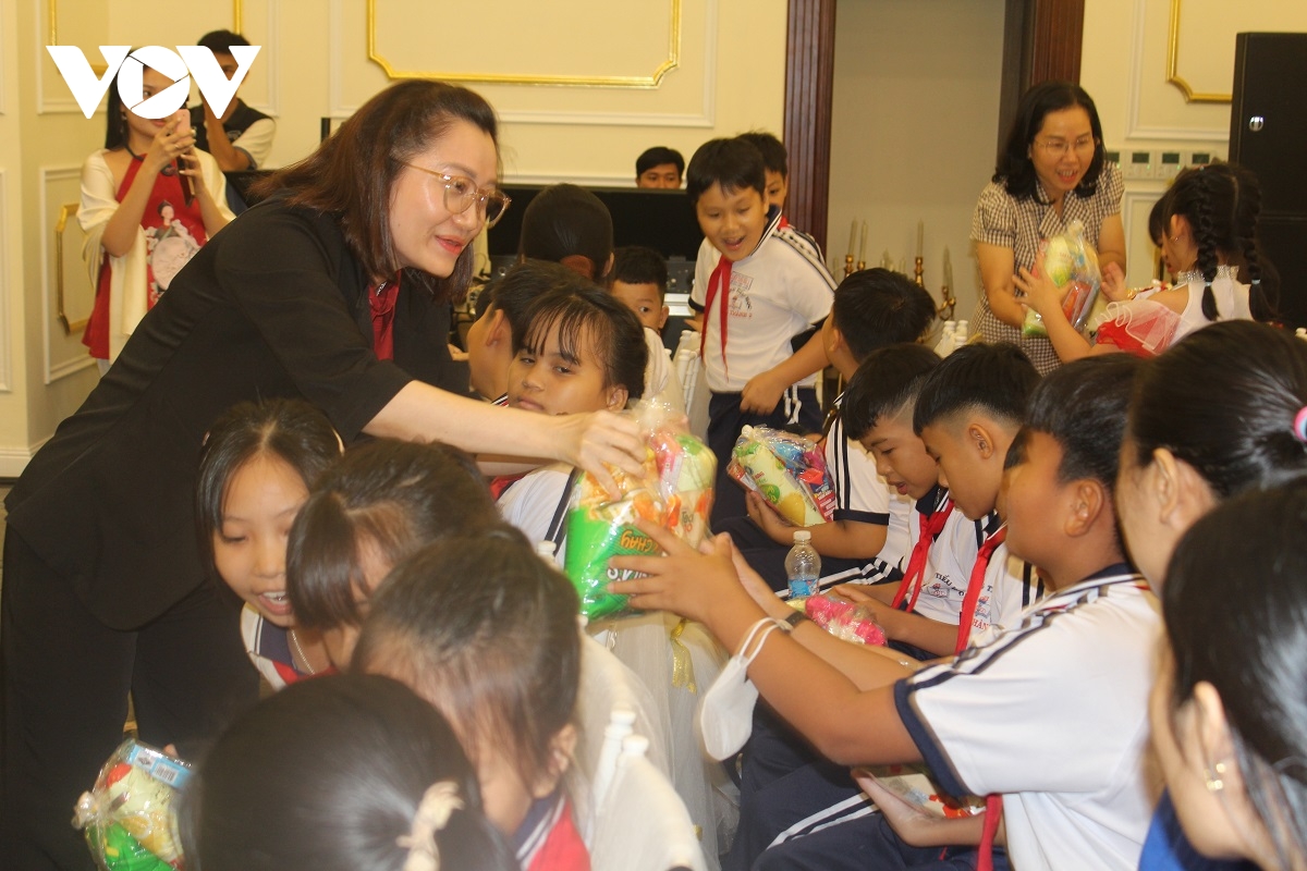Niềm vui của các em học sinh trường Tiểu học Phan Thanh 2 khi được nhận quà Trung thu