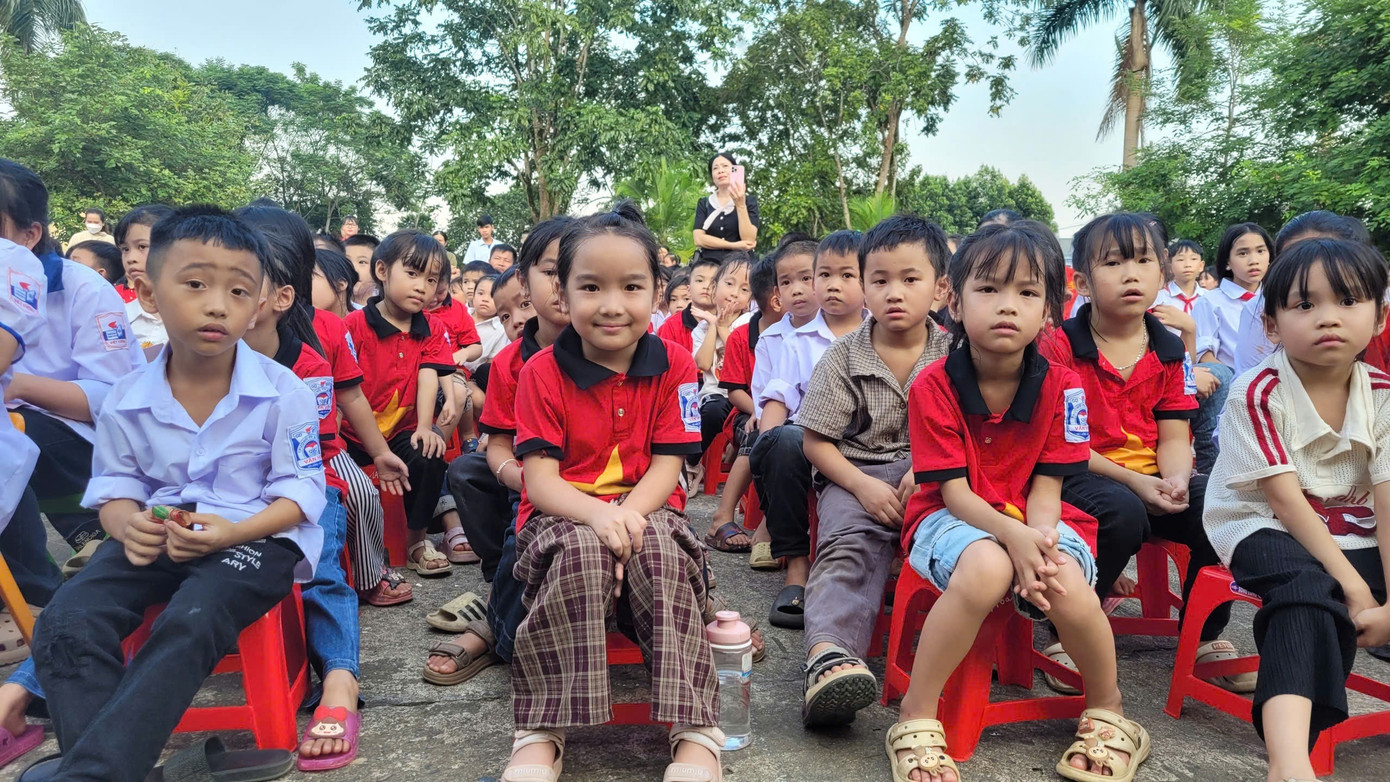 Các em học sinh trường Mầm non và trường TH&THCS Vân Hội, xã Việt Hồng.