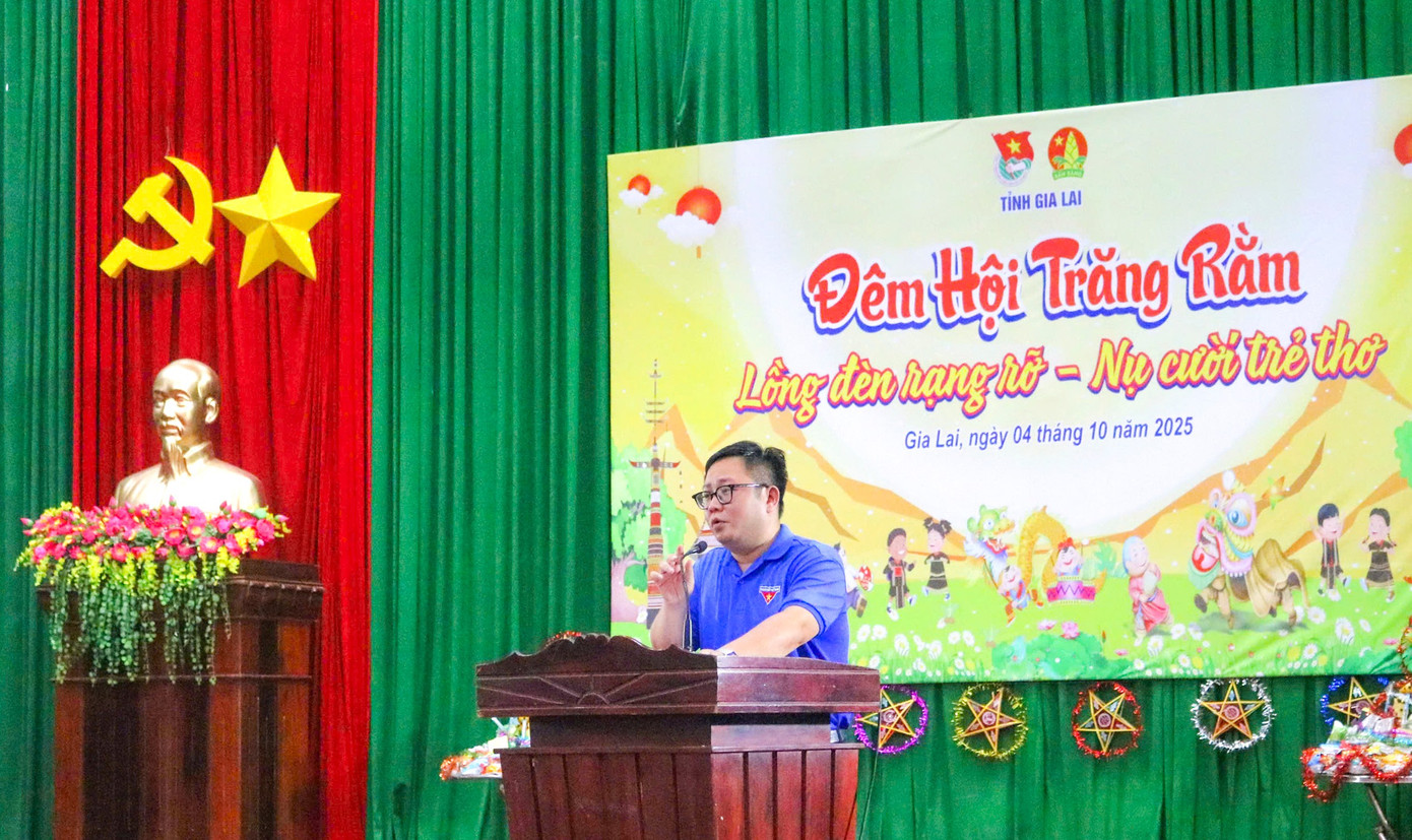 Tại chương trình, anh Nguyễn Chí Hiếu - Phó Bí thư Tỉnh Đoàn Gia Lai đọc thư chúc Tết Trung thu của Chủ tịch nước Lương Cường, qua đó gửi lời khen ngợi, động viên và chúc Tết Trung thu đến các em thiếu niên, nhi đồng trên địa bàn.